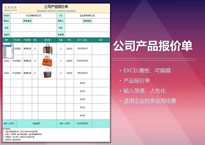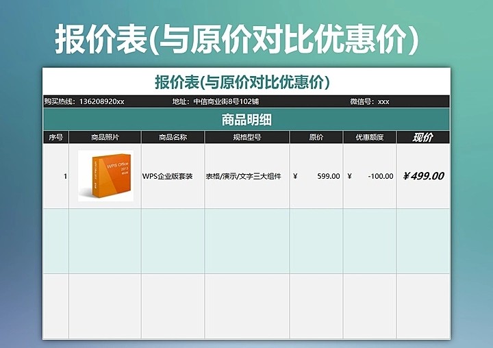 11套带照片产品报价单价目表-科技蓝Excel模板表格公司产品报价单