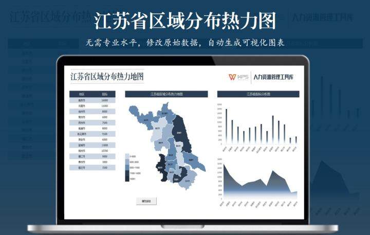 江苏省区域分布热力图(智能图表一键生成)Excel表格模板各地
