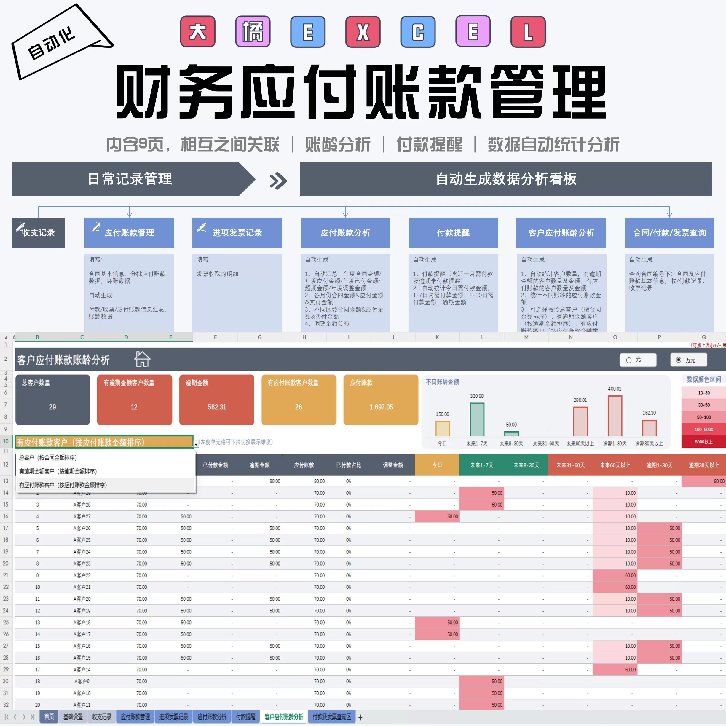 财务应付账款管理表格(付款提醒/账龄管理)
