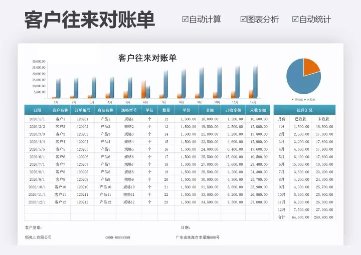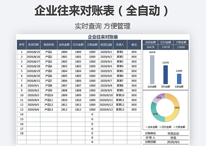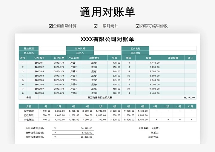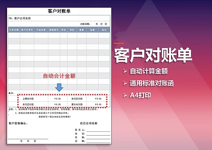 128套对账单Excel表格模板企业公司往来系统财务销售对账