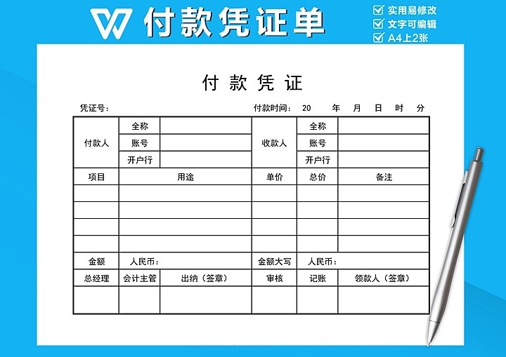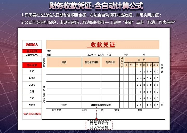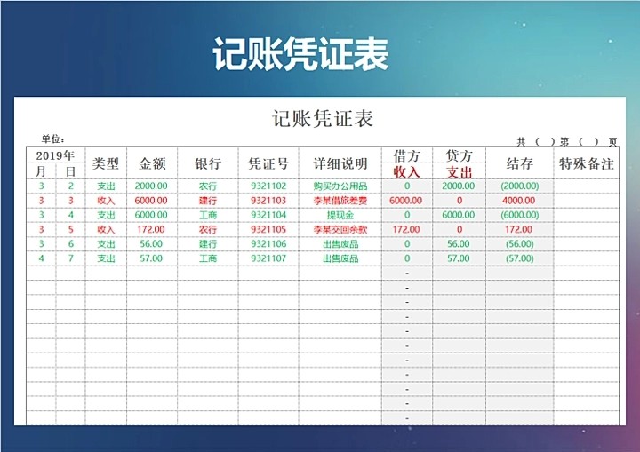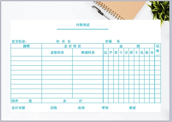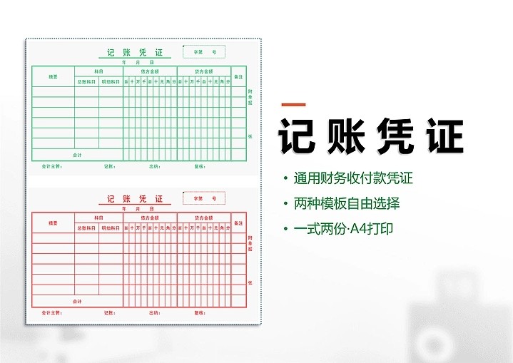 50套会计记账凭证excel电子模板支出现金收付款转账公式系统