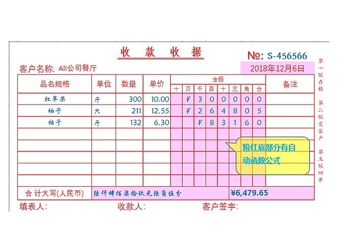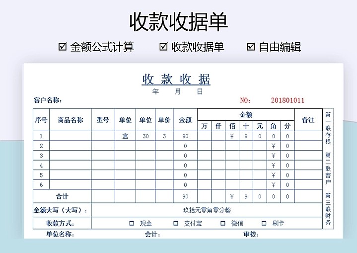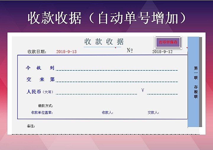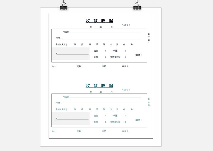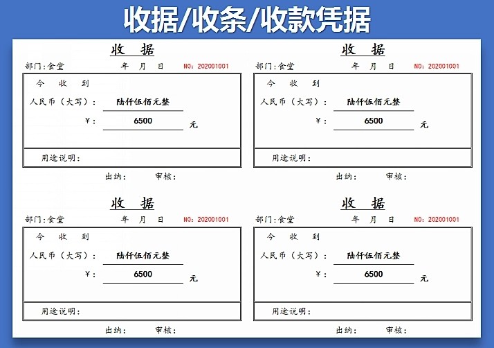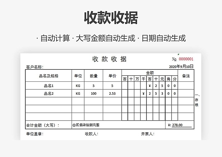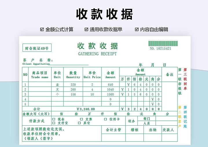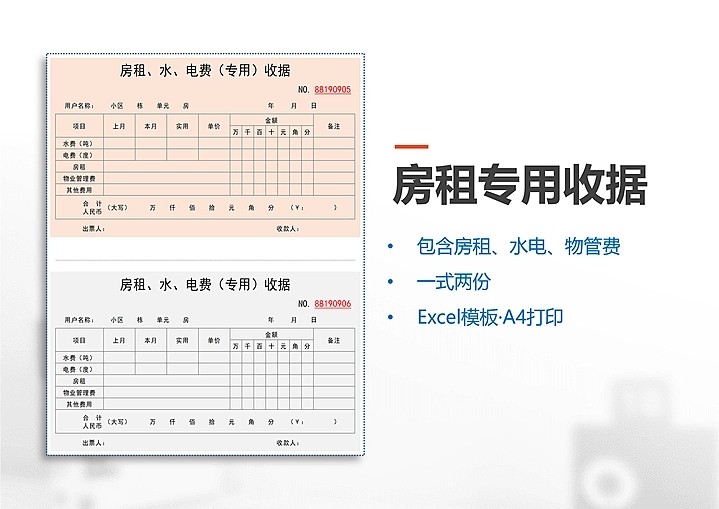 100套收据excel电子模板财务收款付款通用管理水电收据单自动计算
