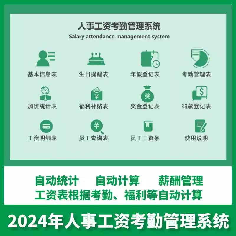 人事工资考勤管理系统Excel表格工资表根据考勤福利自动计算统计