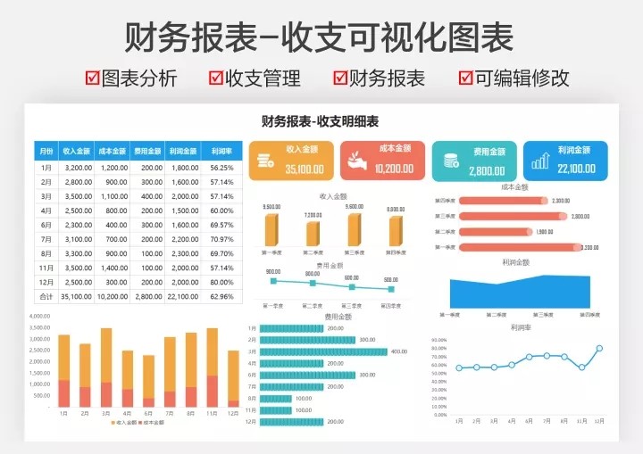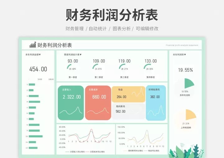 255套公司年终财务数据分析报表excel表格财务看板利润统计
