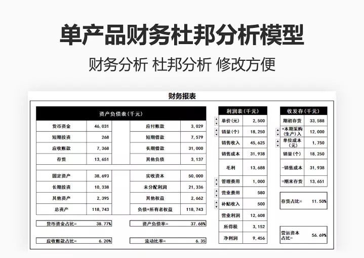 盈亏平衡表财务项目产品创业企业试算收入成本销售月报度支预测计