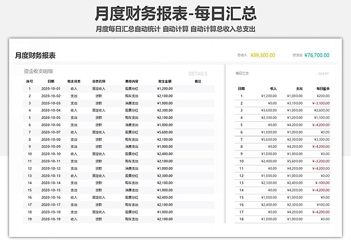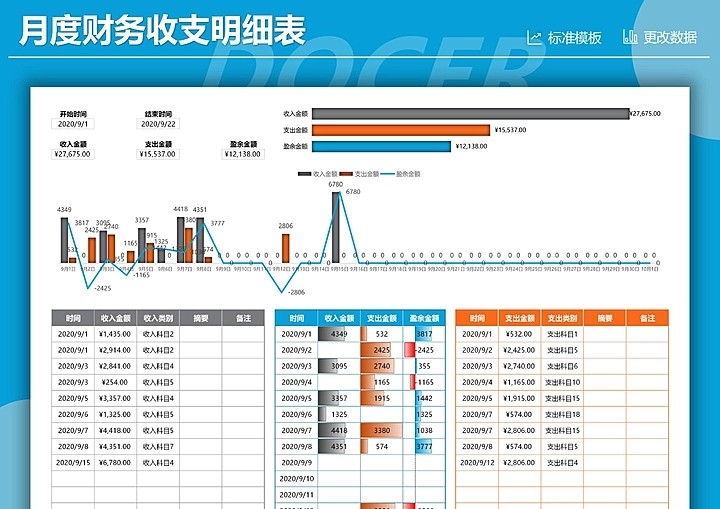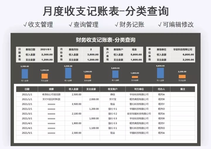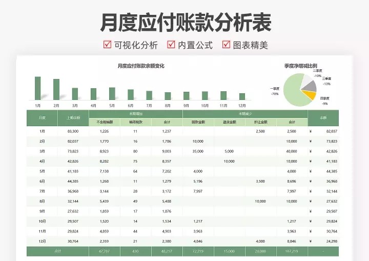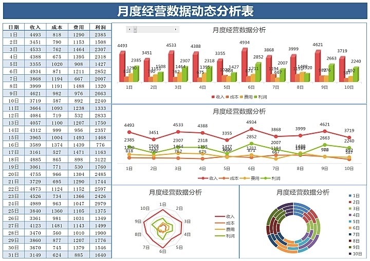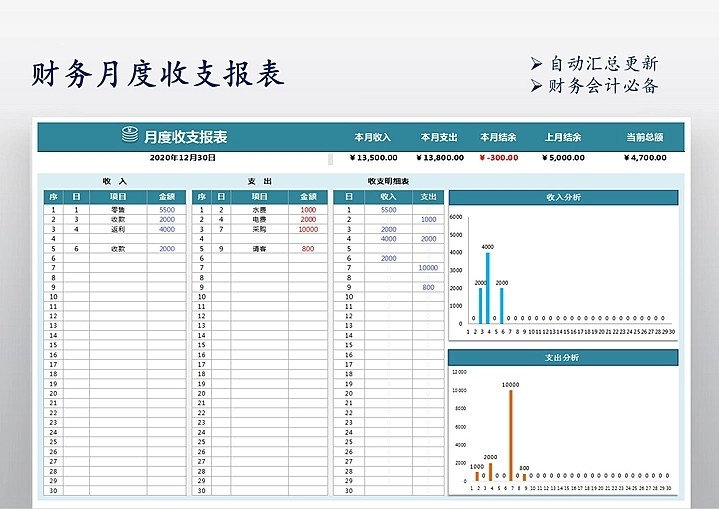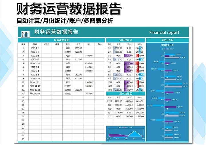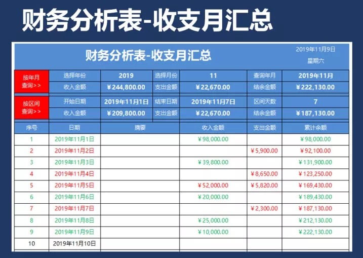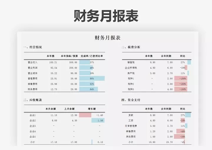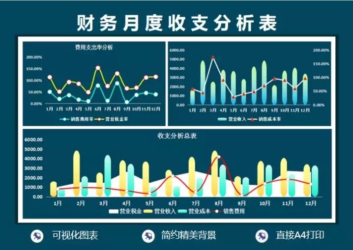 65套月度财务分析报表excel表格公司月度成本开销收支汇总