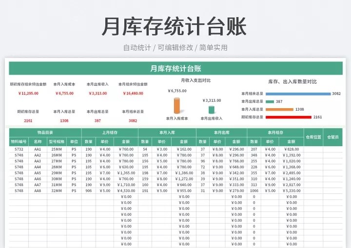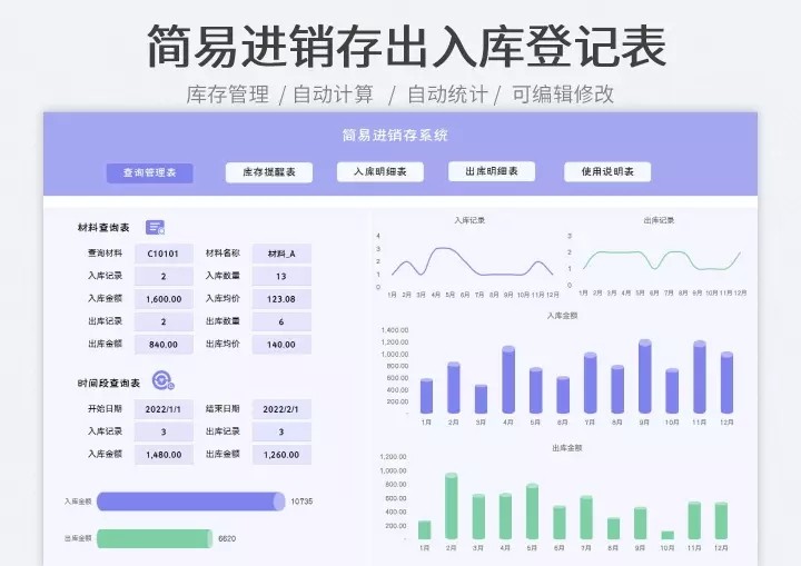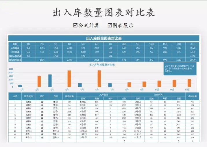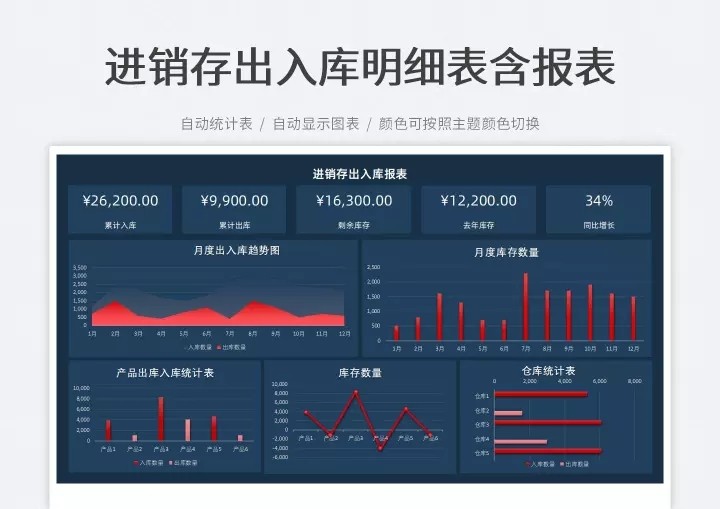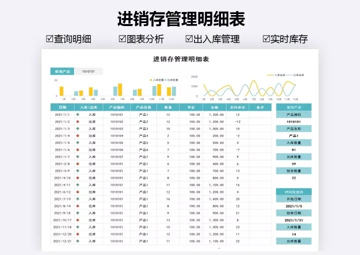 出入库明细表每月入库出库实时库存查询图表分析Excel表格模板
