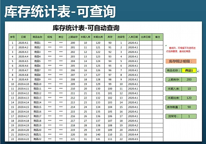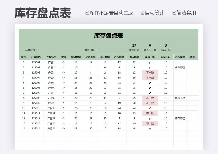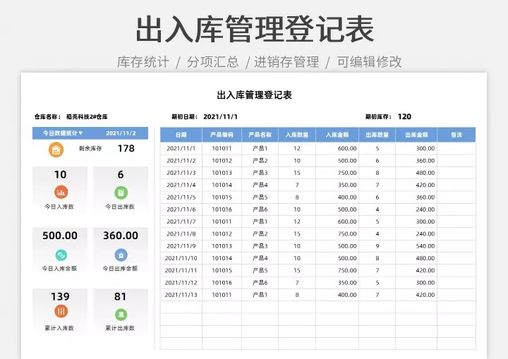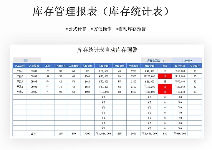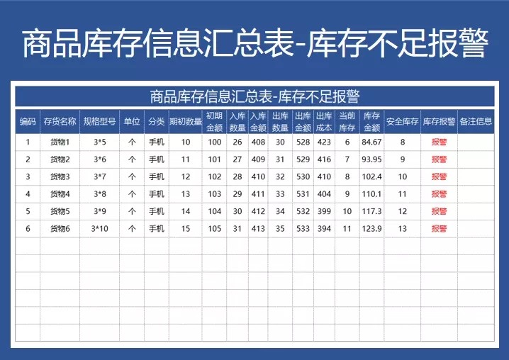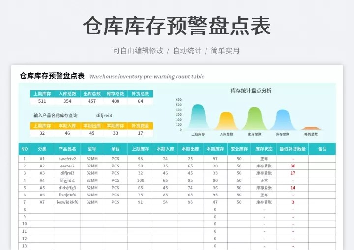 库存管理系统excel表格库存盘点预警提醒实时库存