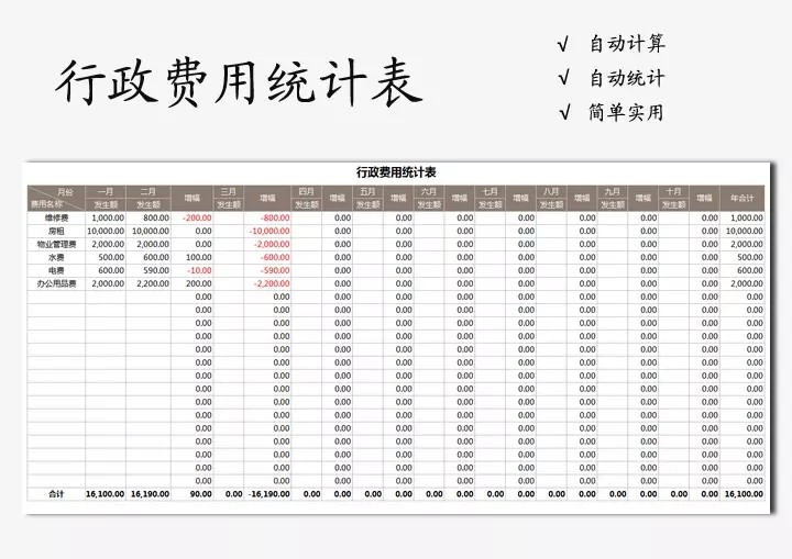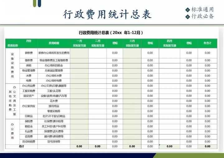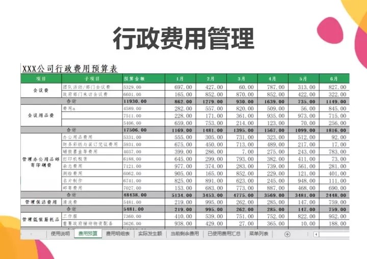 43套行政费用excel表格模板系统行政费用预算统计明细