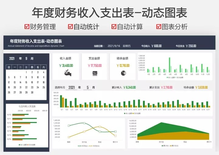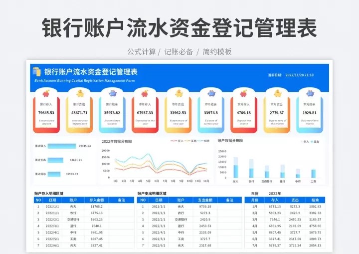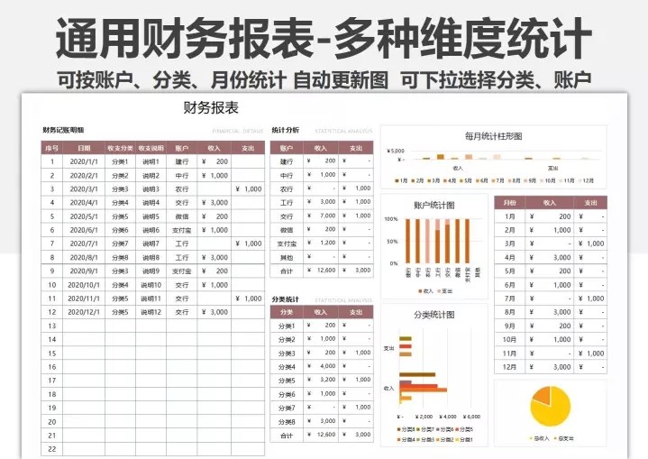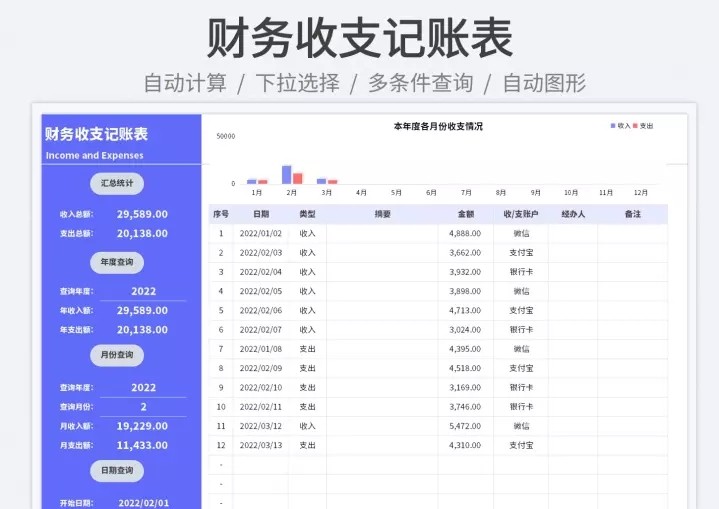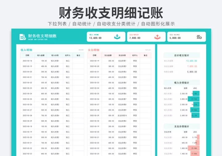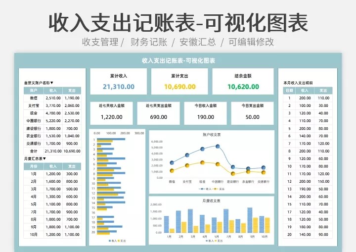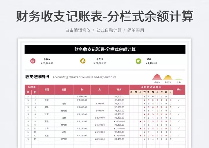 财务收支excel表格模板收入支出流水明细表个人家庭记账管理
