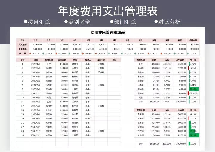 财务成本预算管理表格(预算管控/预实分析)