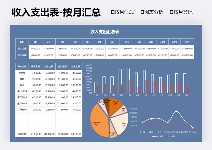 出入库明细表每月入库出库实时库存查询图表分析Excel表格模板