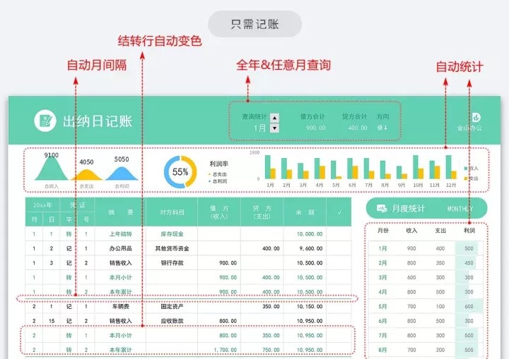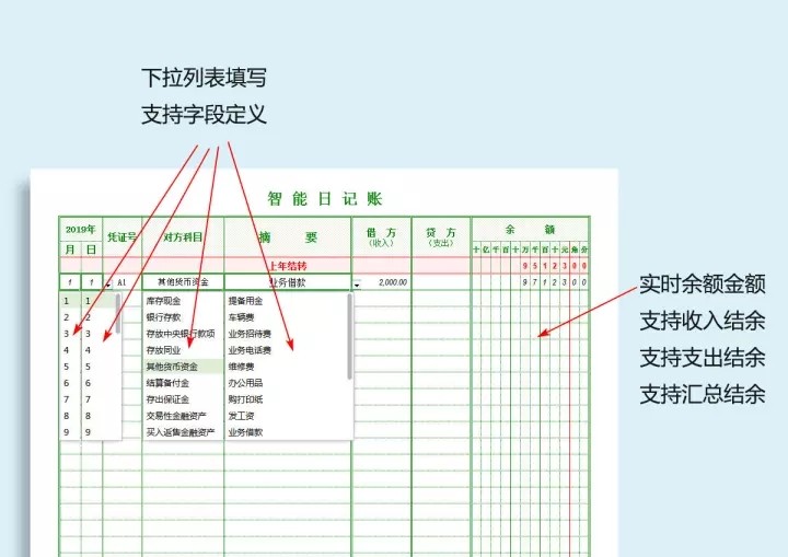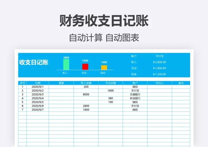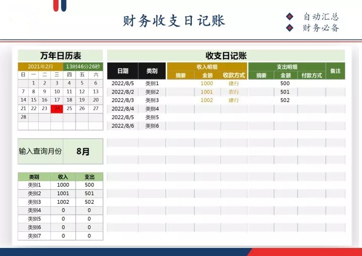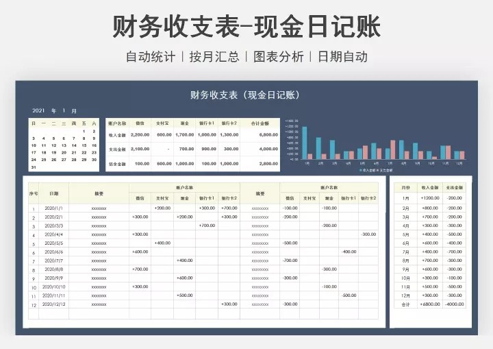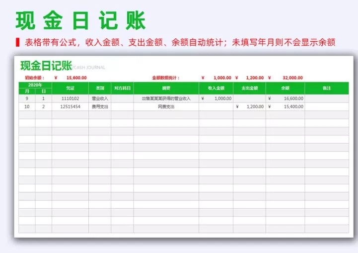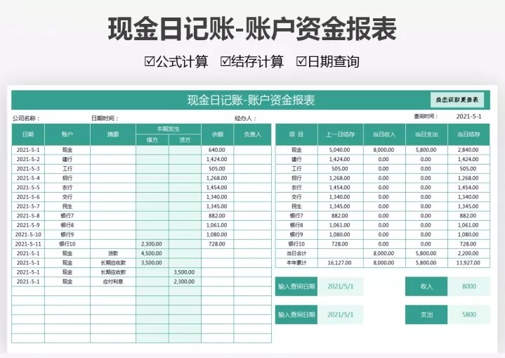 103套日记账excel表格(现金、银行、收支)等日记账模板系统