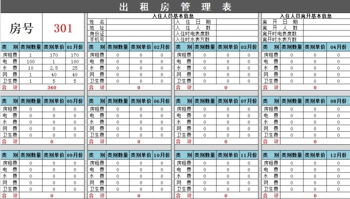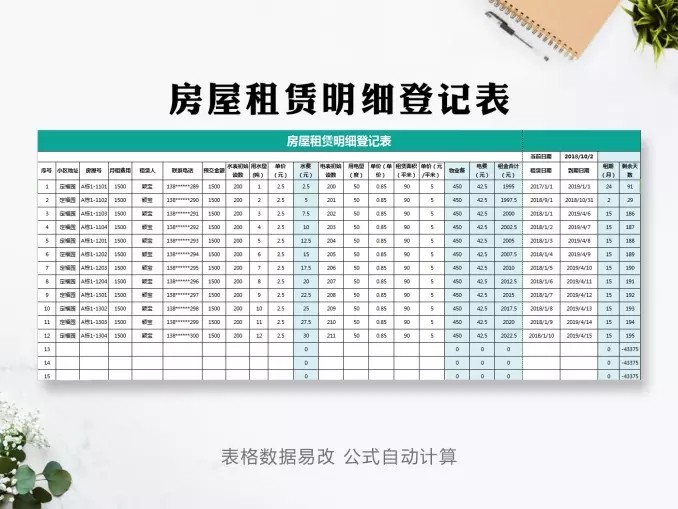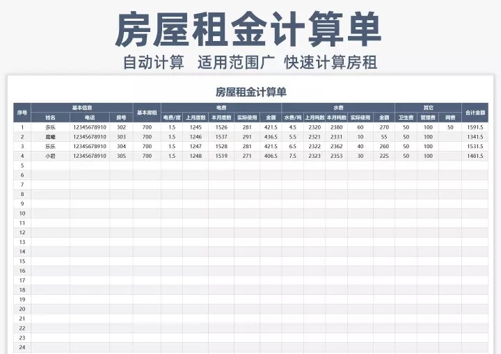 66套房东专用Excel表格房屋租赁系统租金计算统计出租水电费