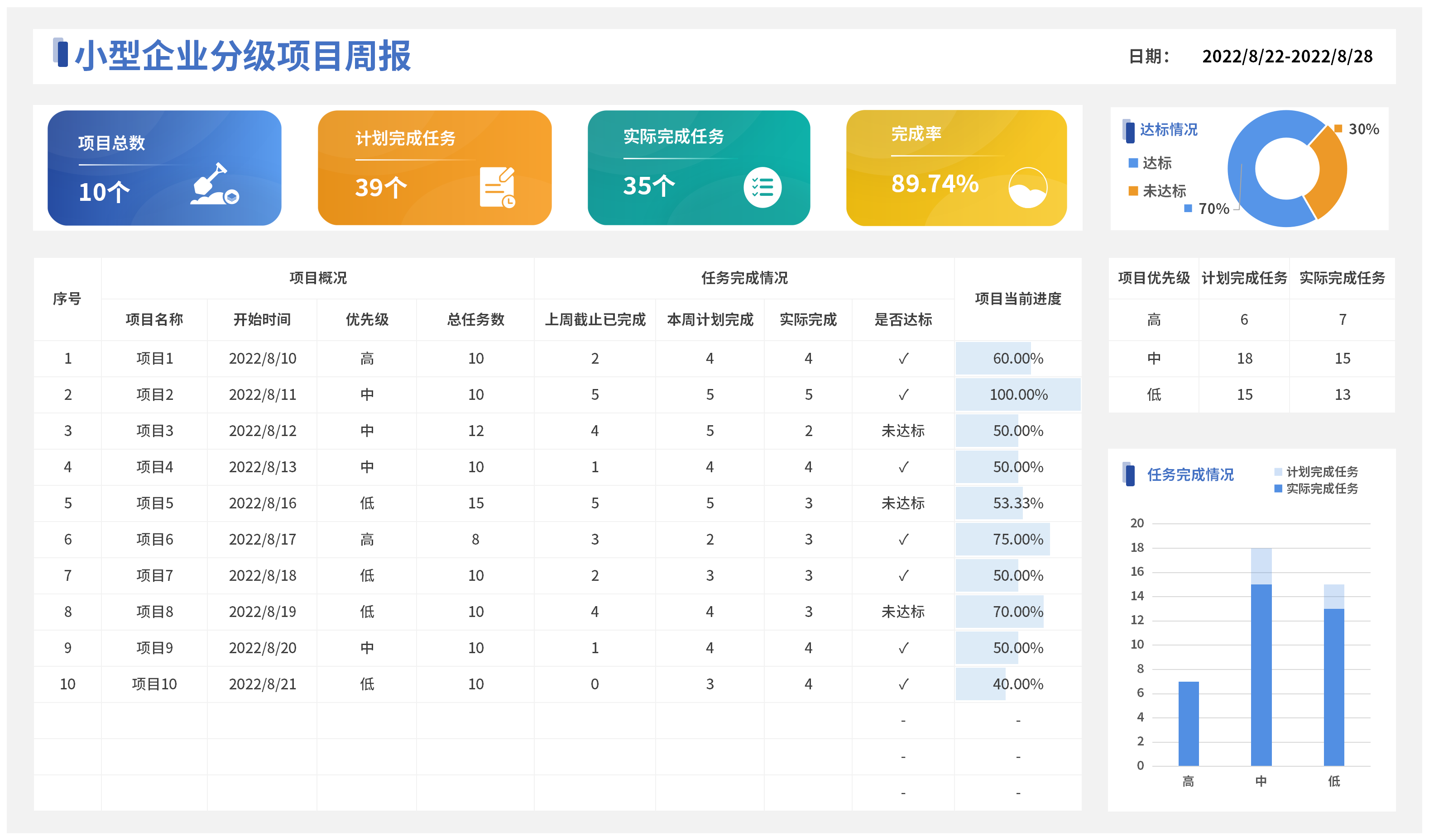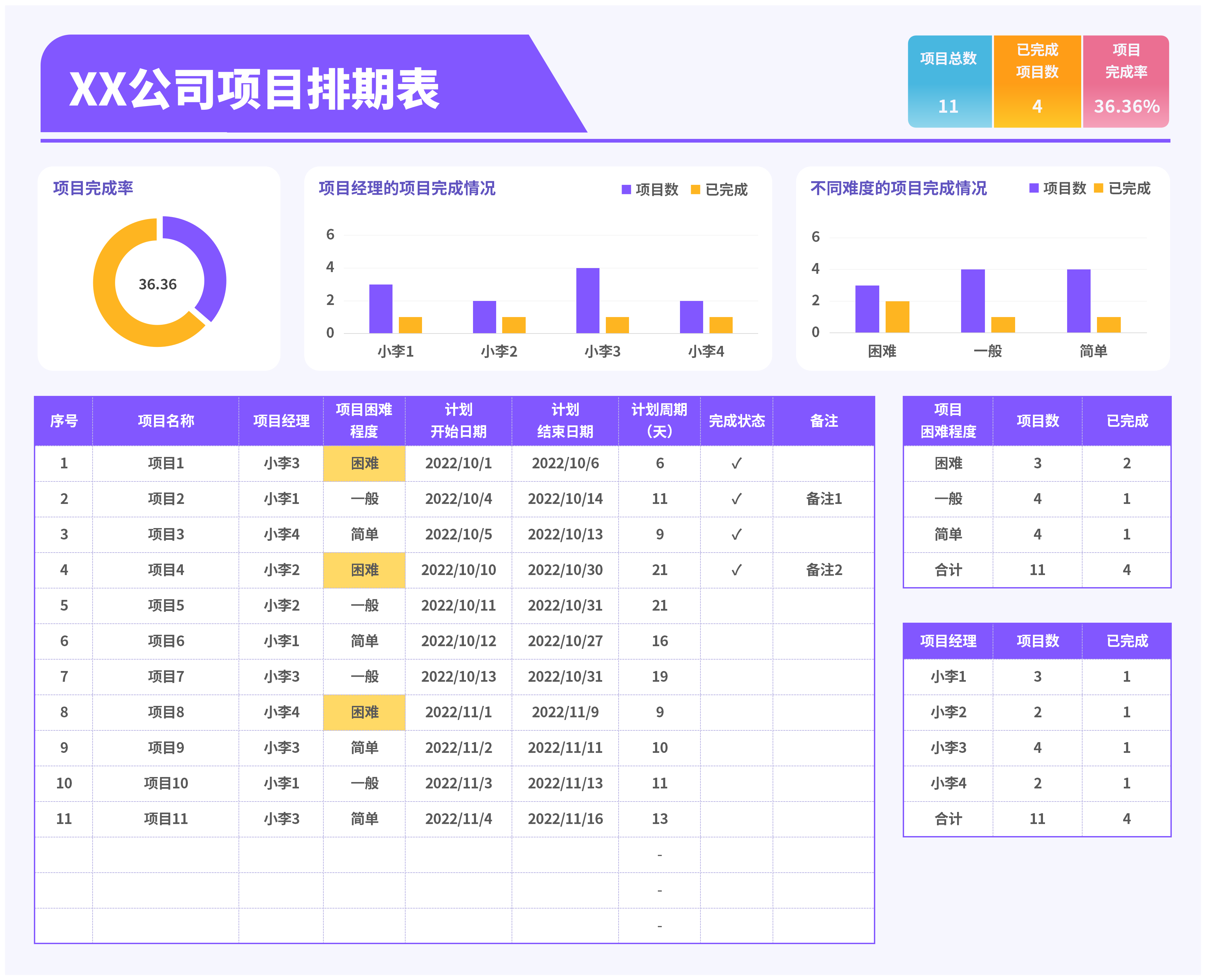 项目进度状态追踪甘特图Excel表格软件生产活动任务计划
