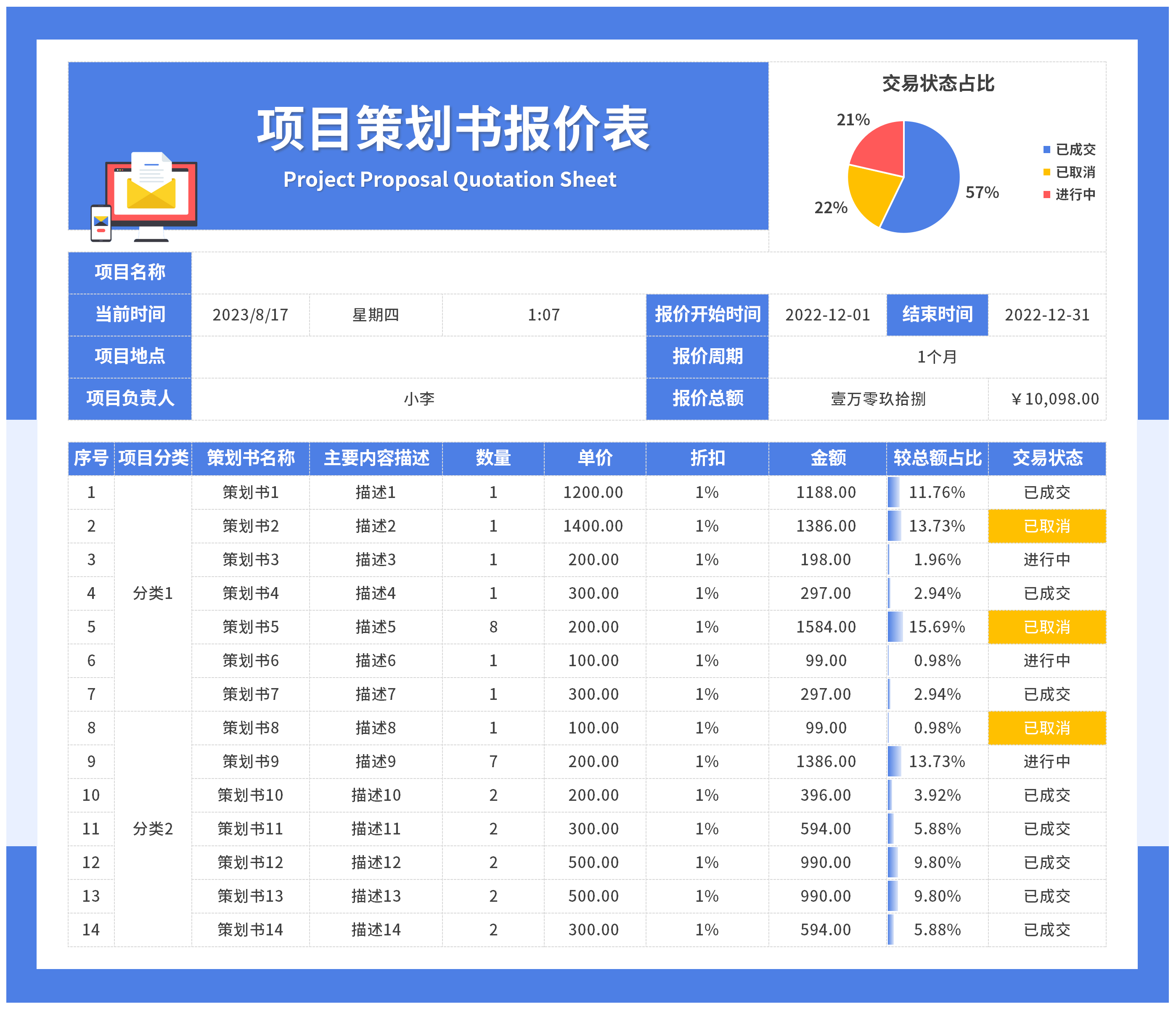 11套带照片产品报价单价目表-科技蓝Excel模板表格公司产品报价单