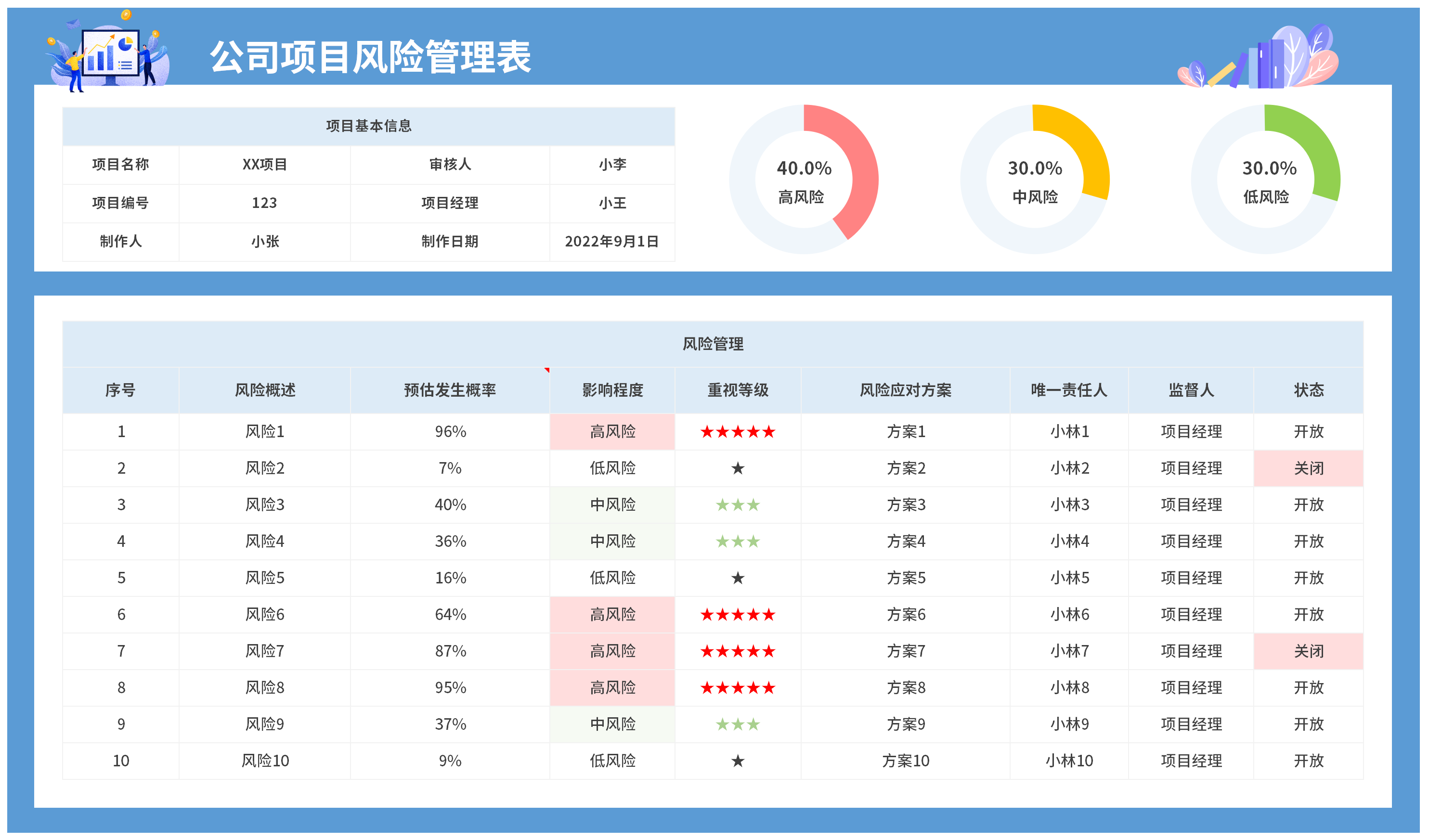 项目管理的8个表格