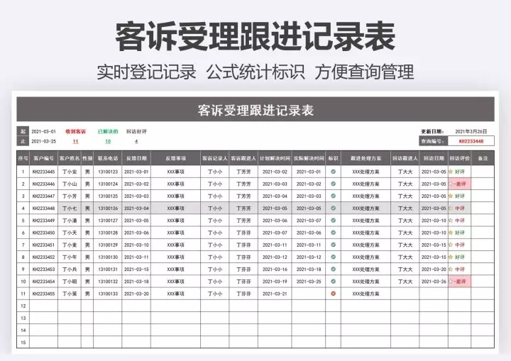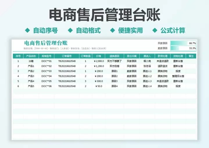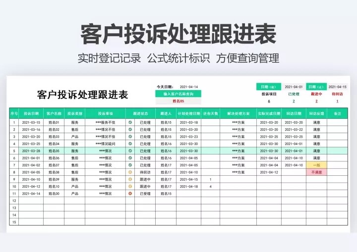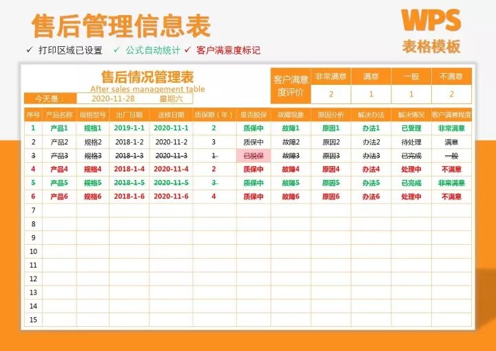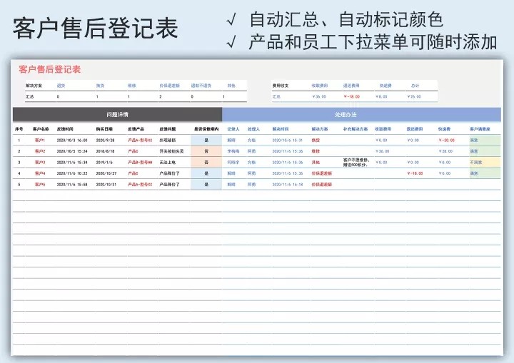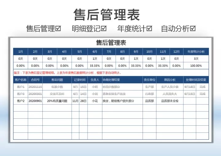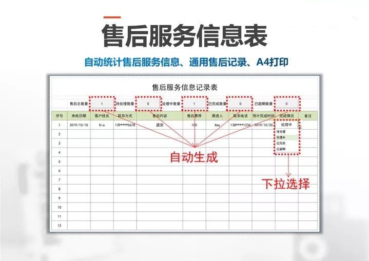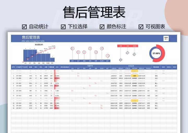80套售后专用Excel表格模板售后管理登记统计分析绩效跟踪退换货
