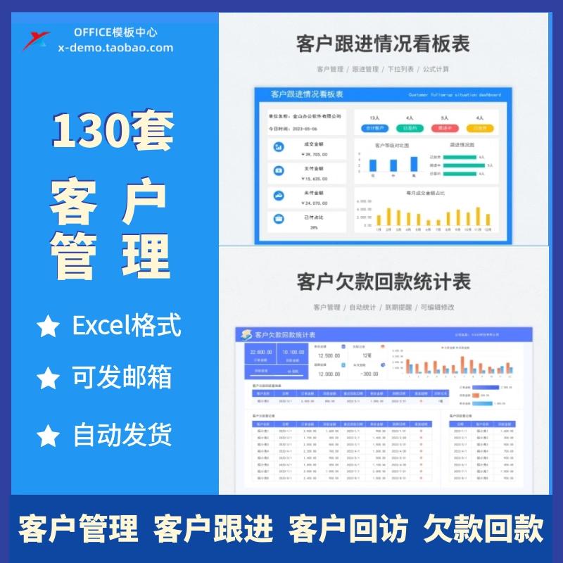 130套客户管理系统excel表格客户登记统计跟进拜访投诉管理