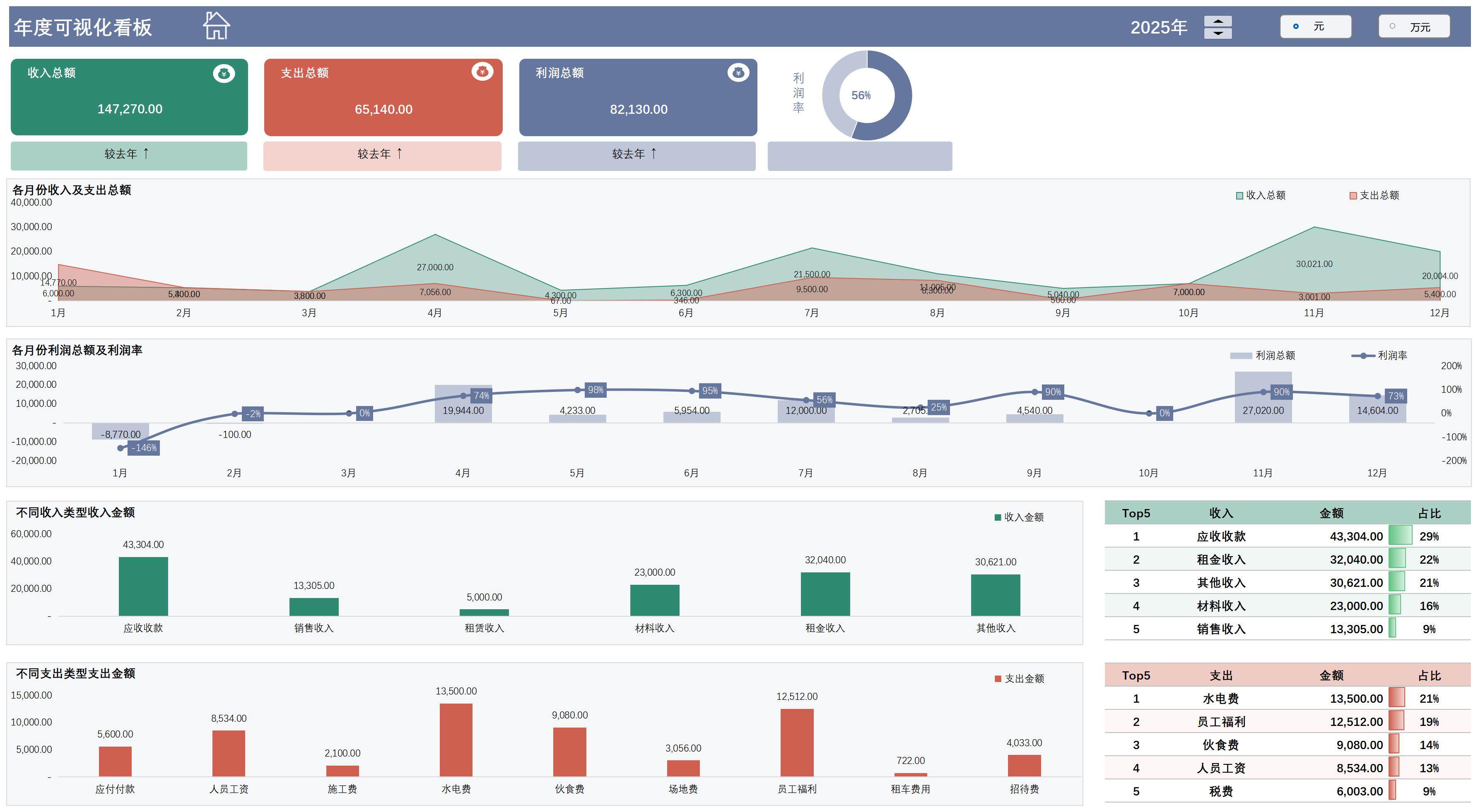 255套公司年终财务数据分析报表excel表格财务看板利润统计