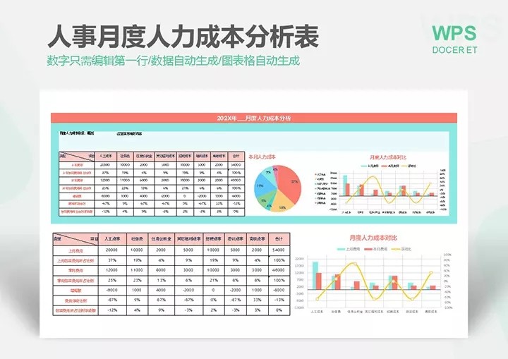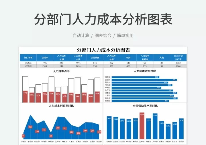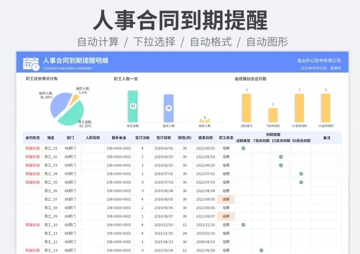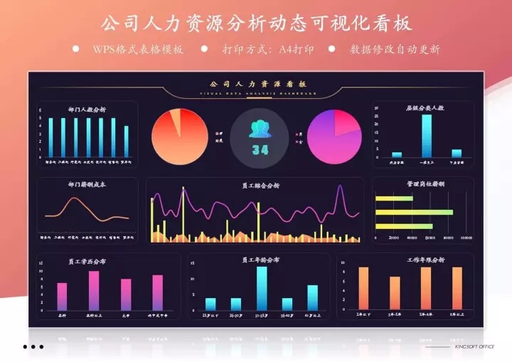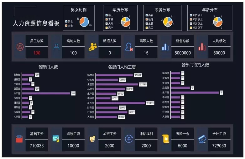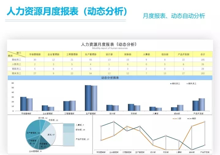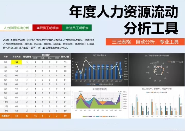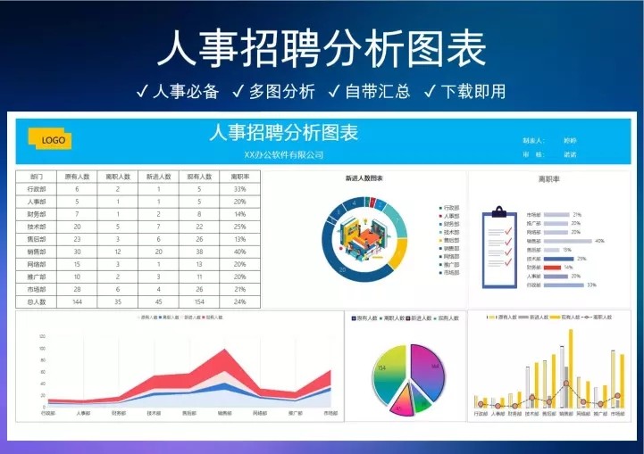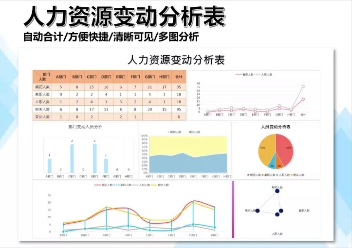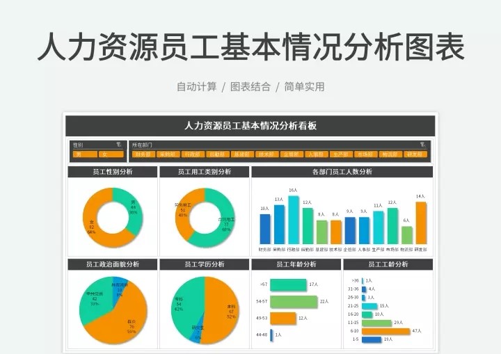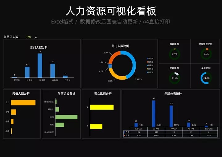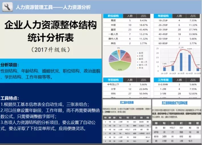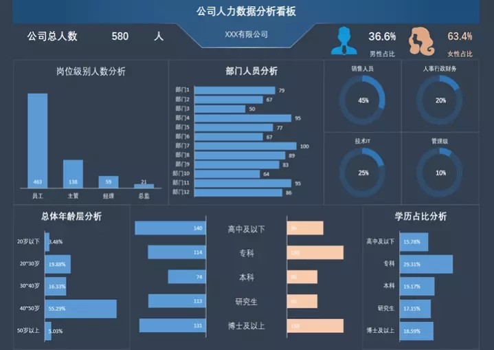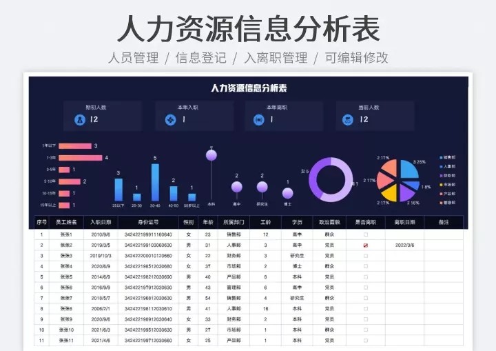 50套人力资源数据分析Excel表格学历结构分析HR看板绩效考核