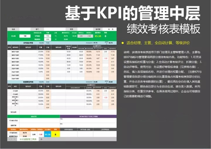 部门KPI绩效考核表模板Excel表格模板全自动公式计算