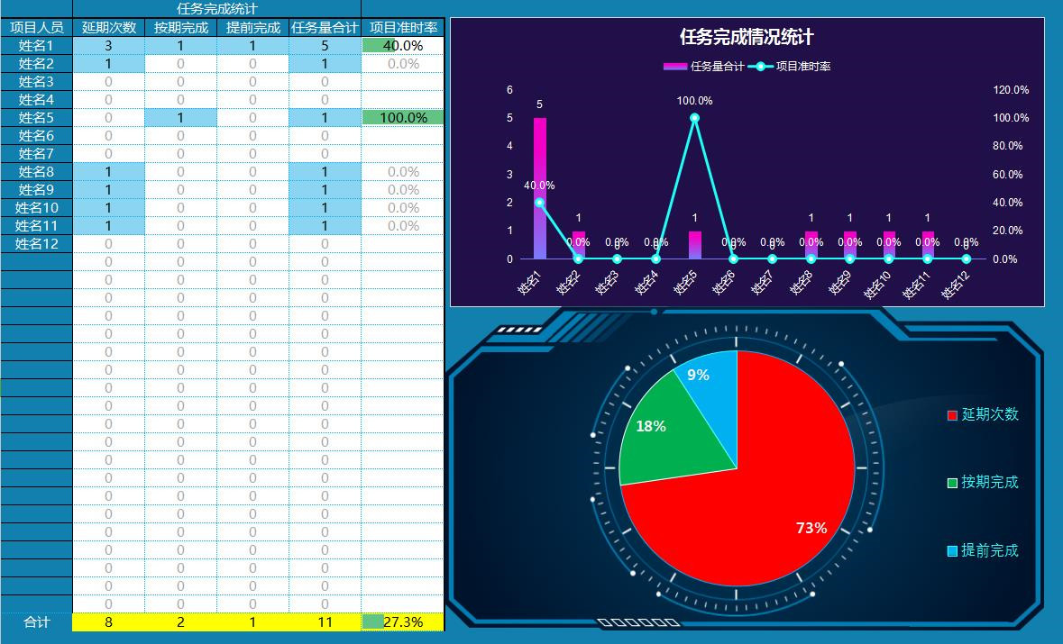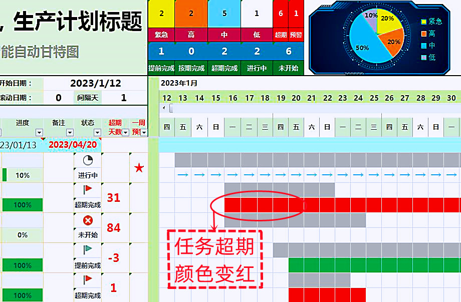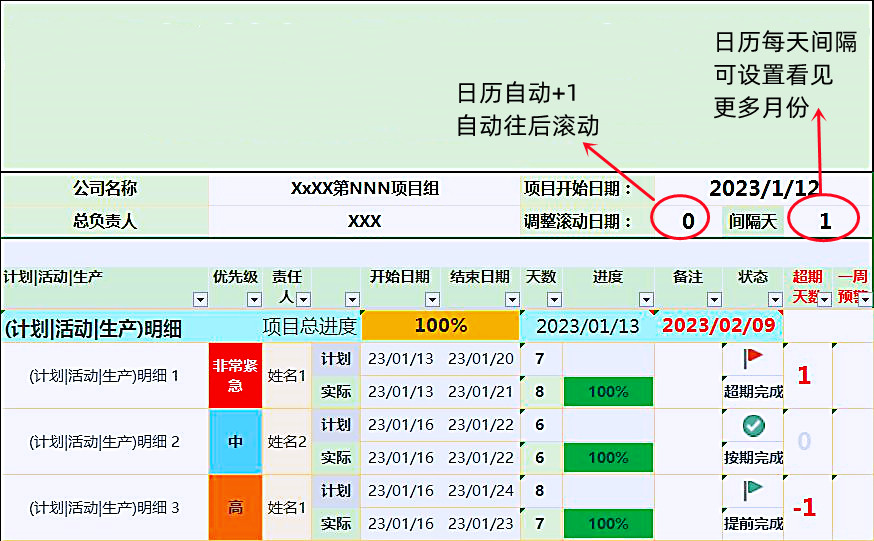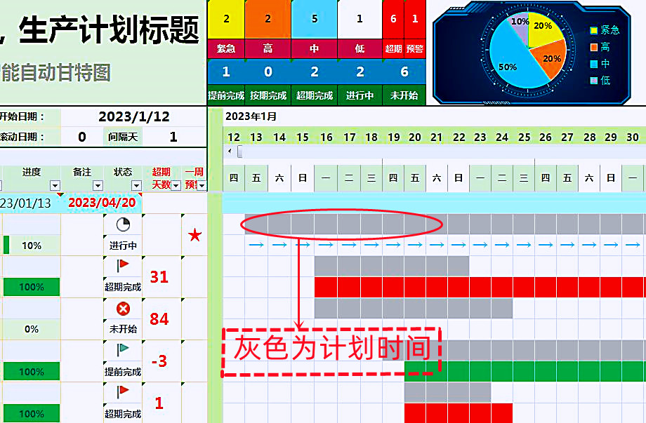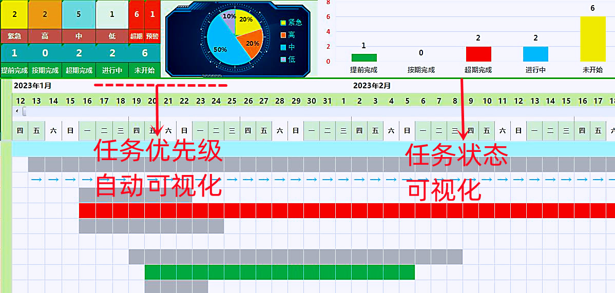 excel-项目管理进度甘特图模板(日+周+月进制版)