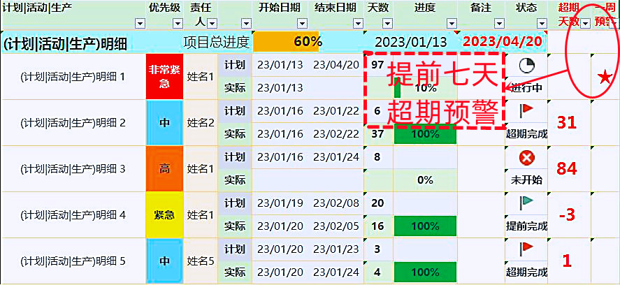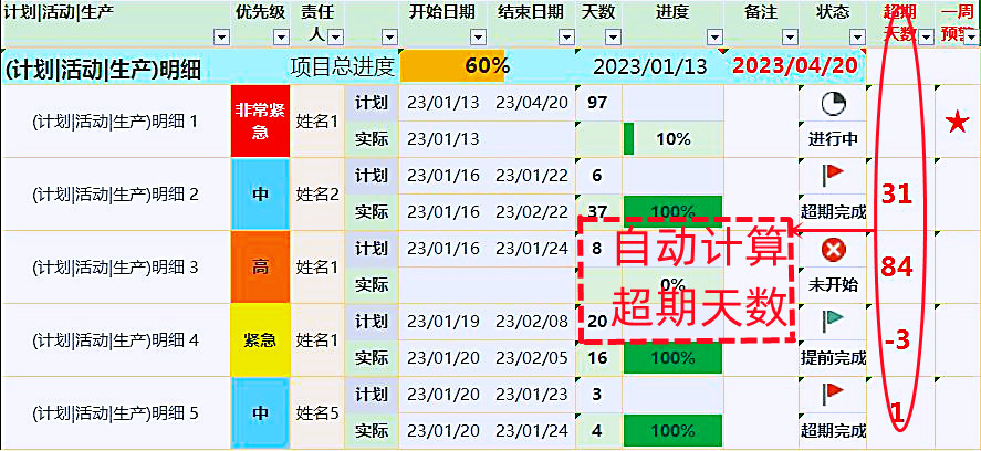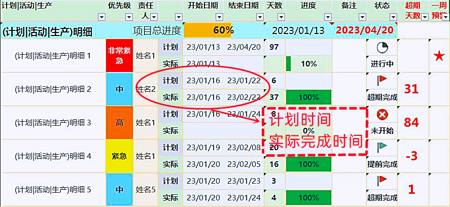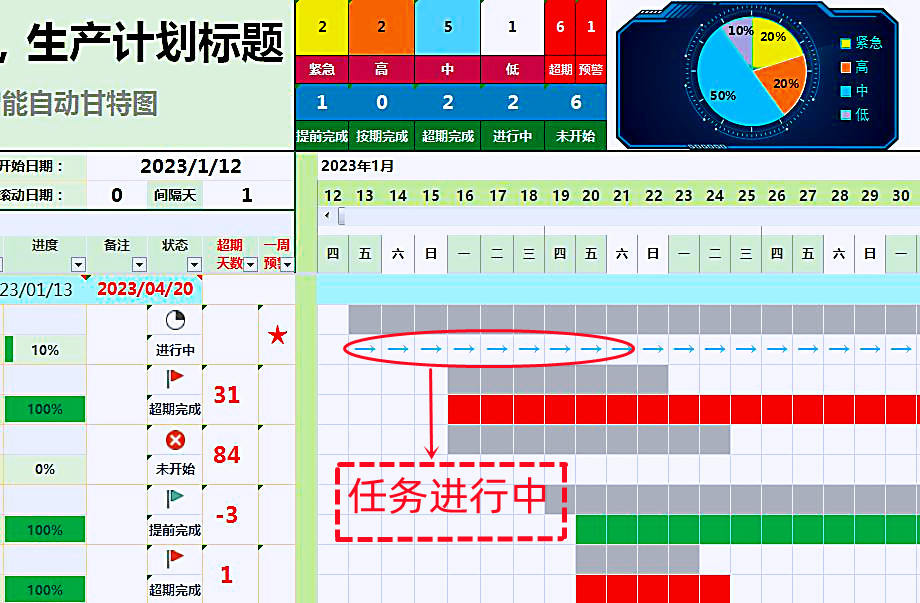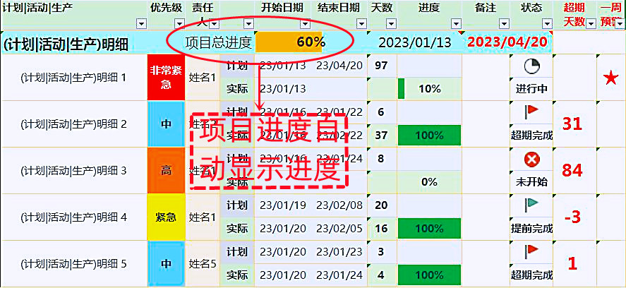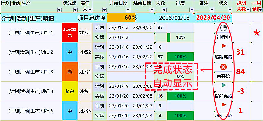 项目进度状态追踪甘特图Excel表格软件生产活动任务计划