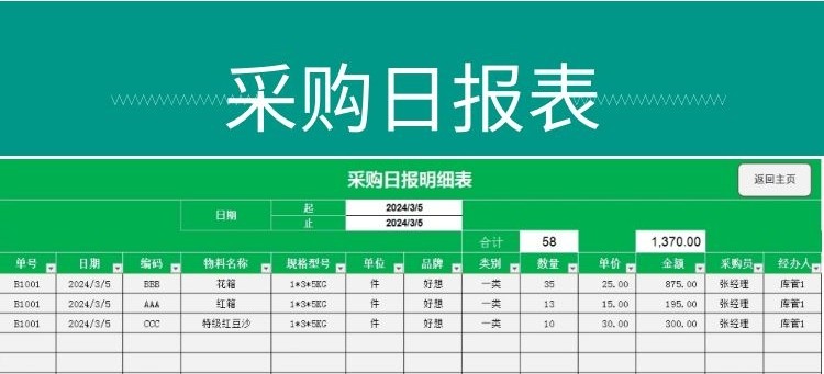采购管理系统Excel表格采购合同日报表采购清单查询对账单