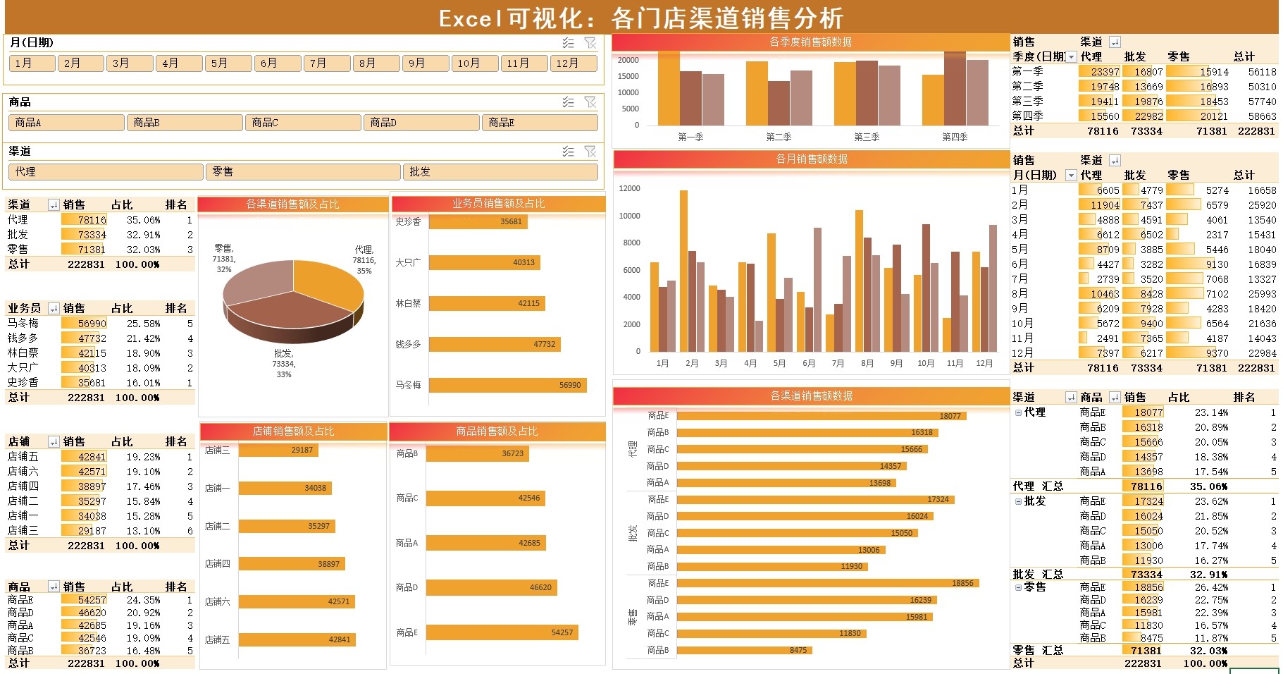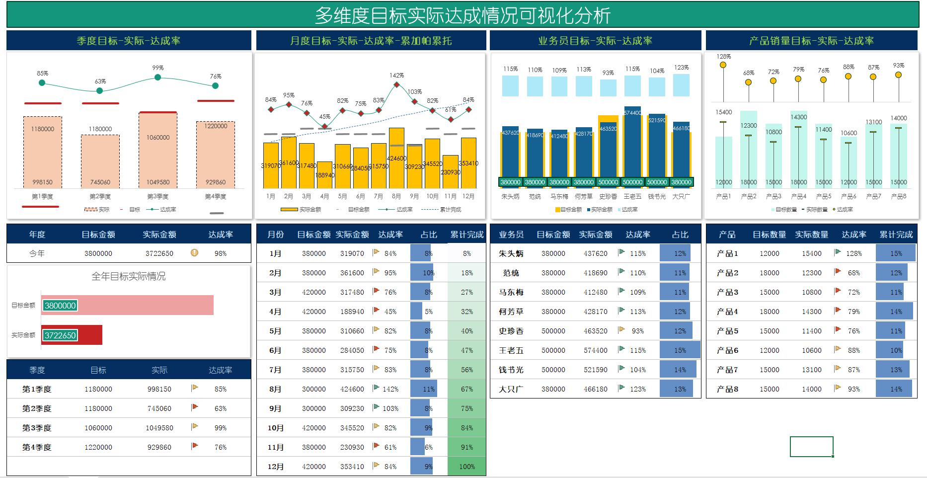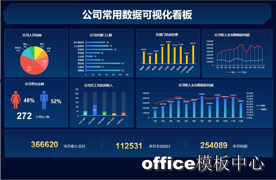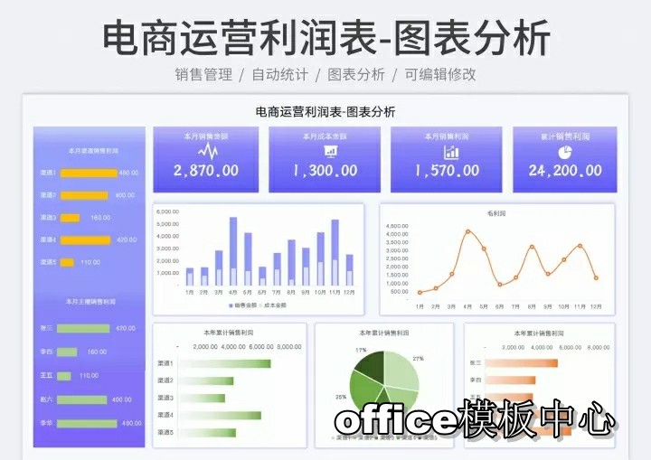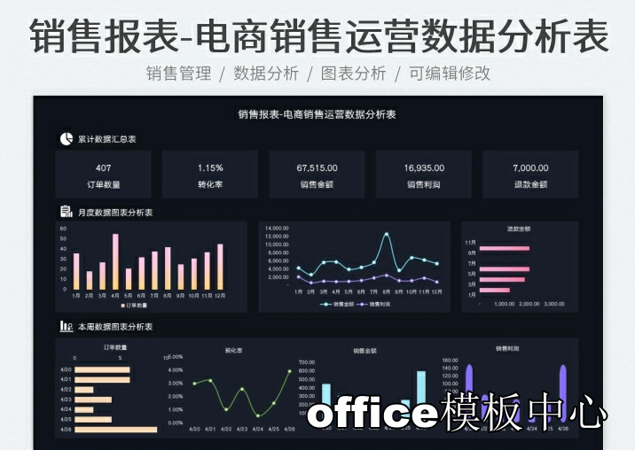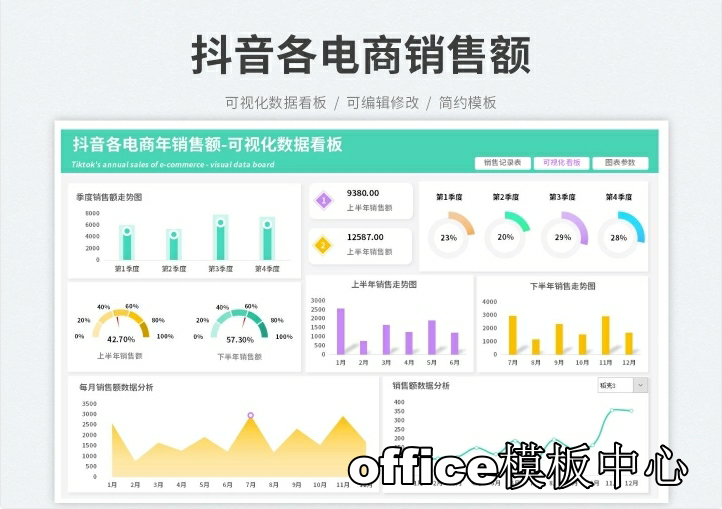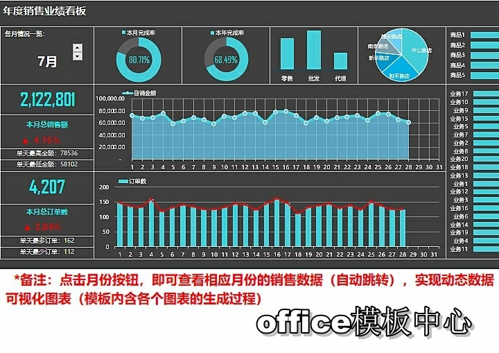 自动生成动态可视化图表Excel表格销售财务数据分析看板PPT