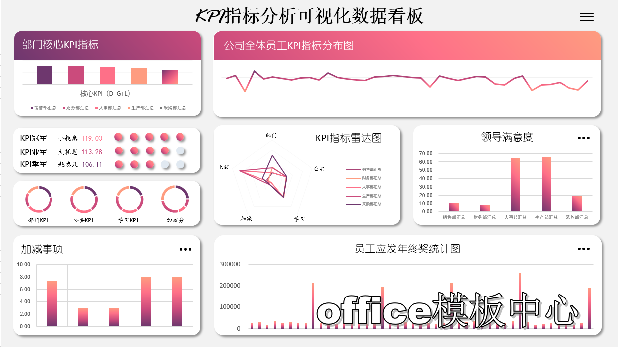 部门KPI绩效考核表模板Excel表格模板全自动公式计算