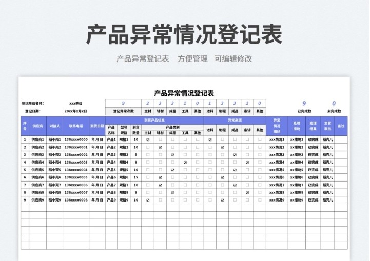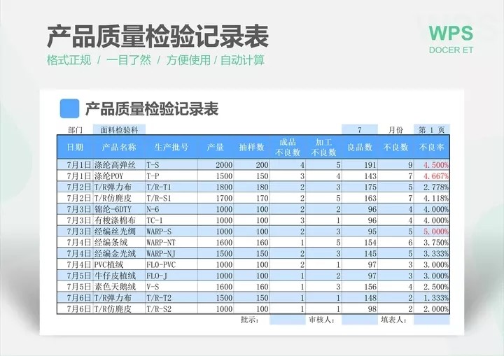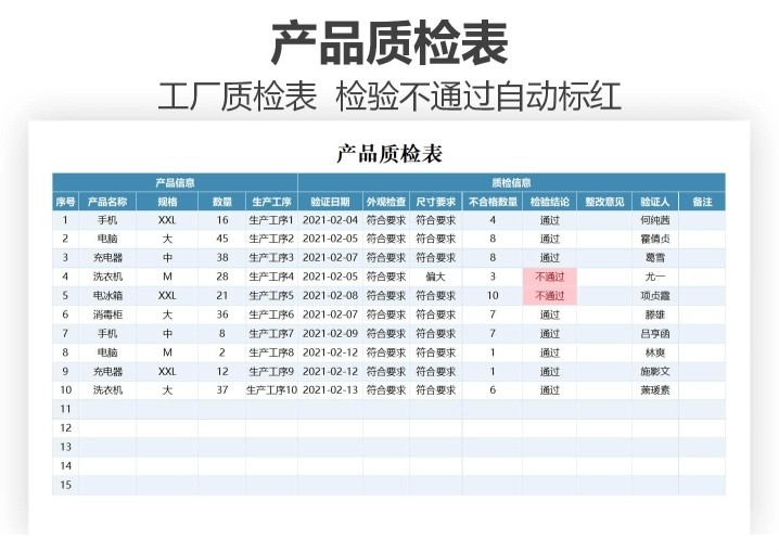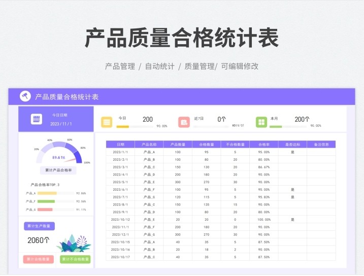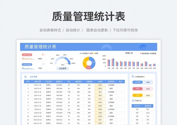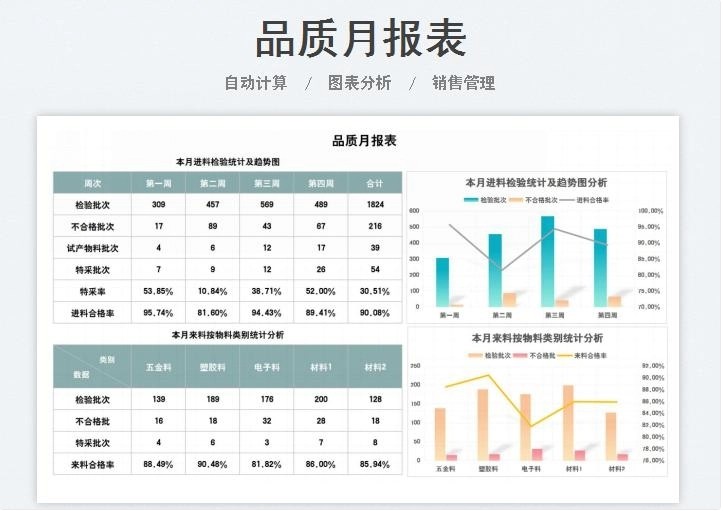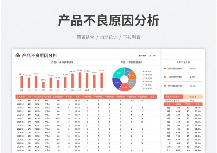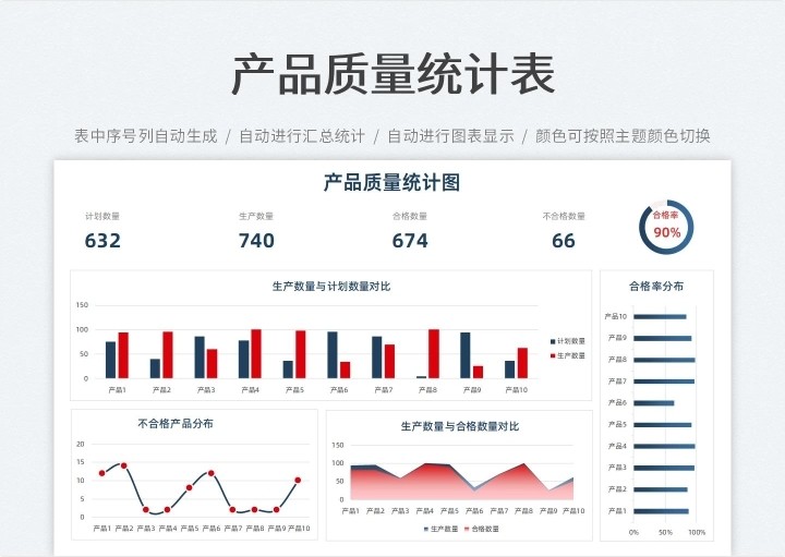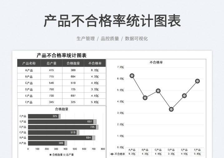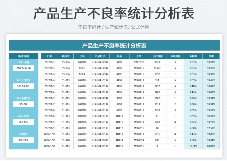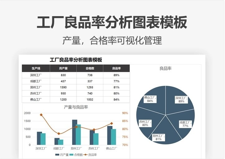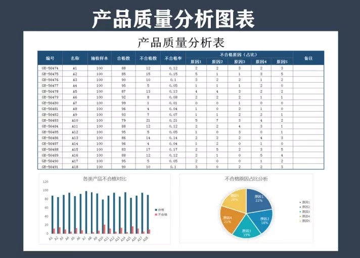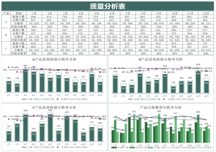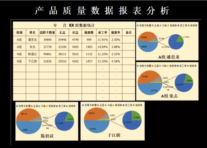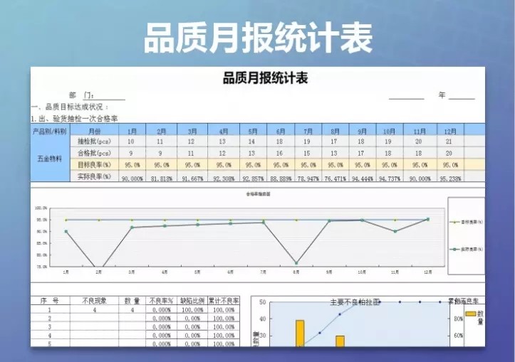 产品质量数据报表分析品质管理Excel表格合格良品率问题检验处理