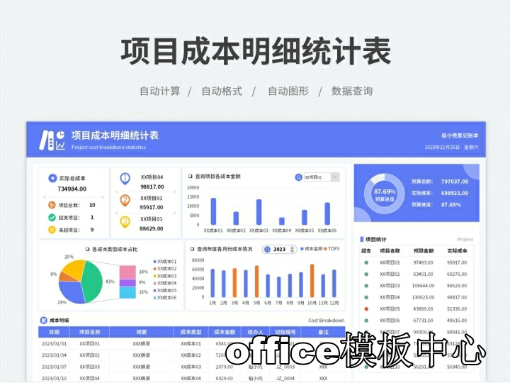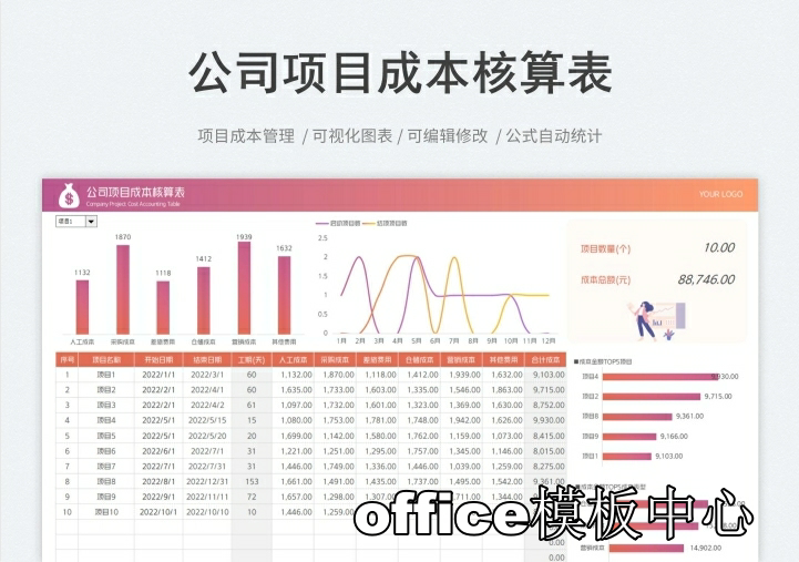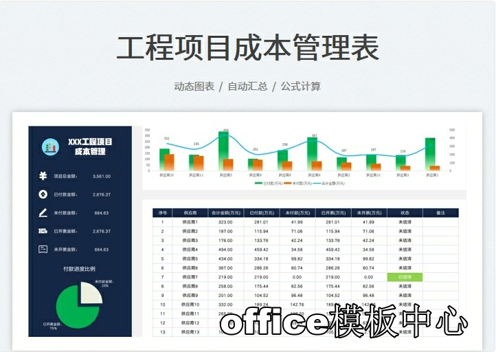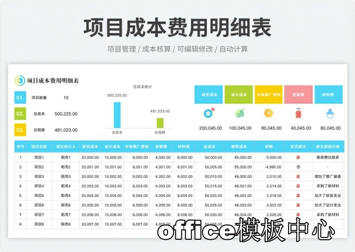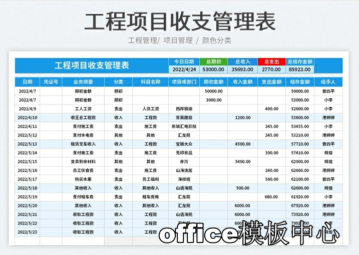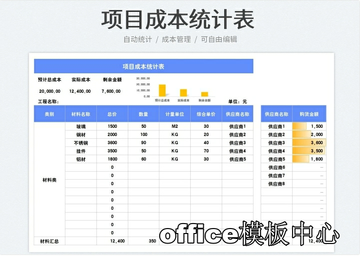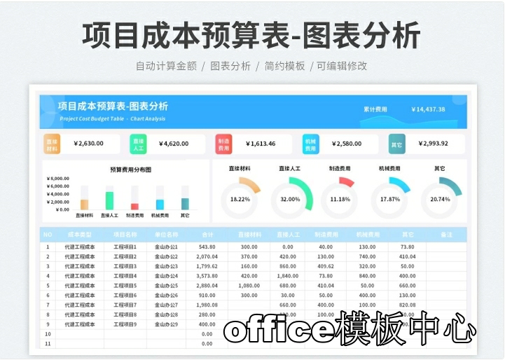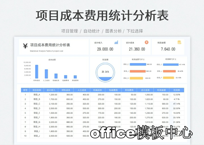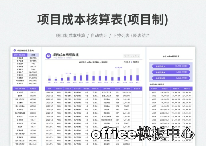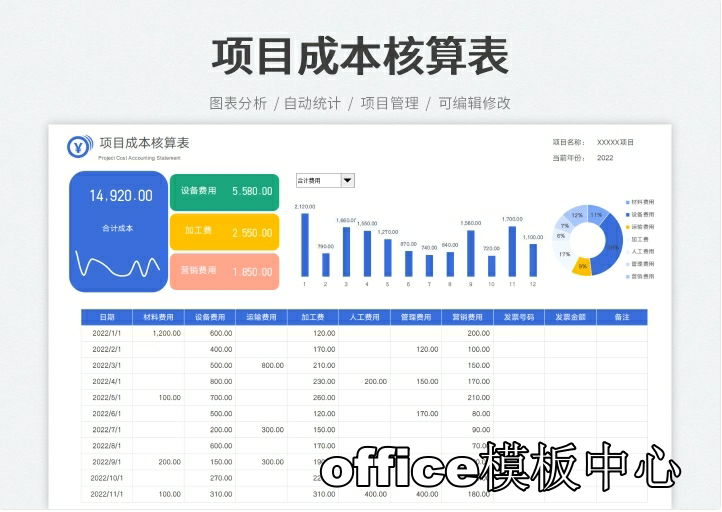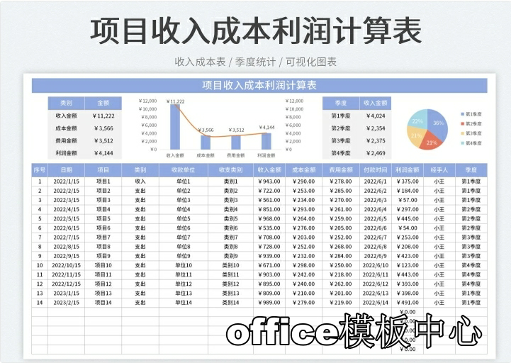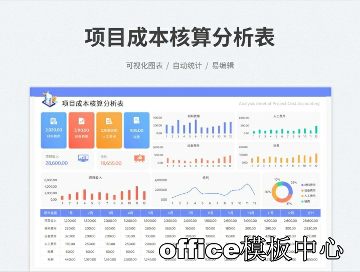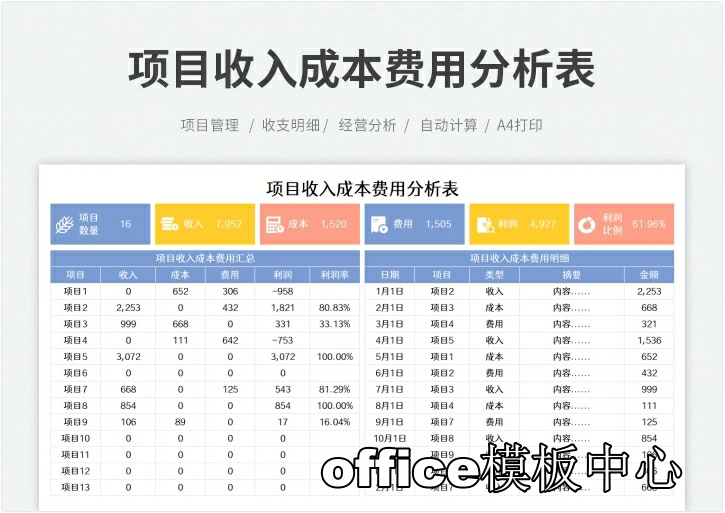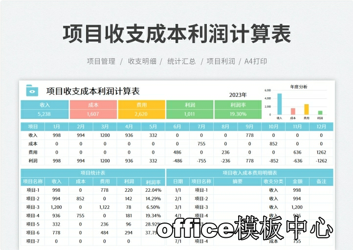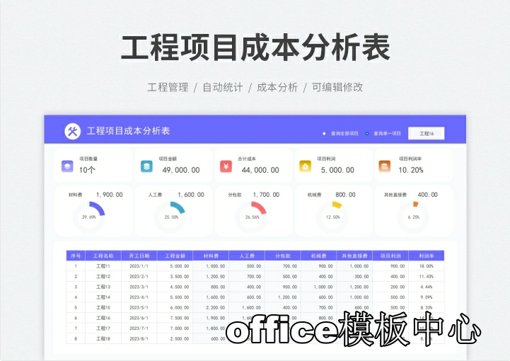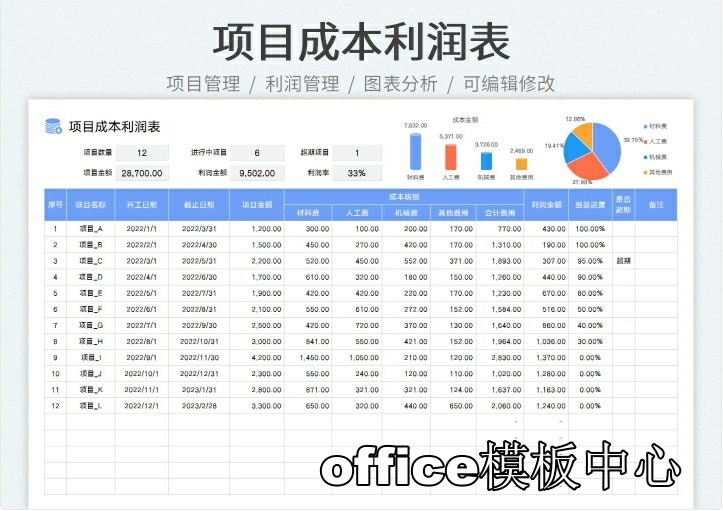 工程项目成本核算预算excel表格项目收支成本利润计算分析管理表
