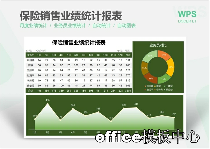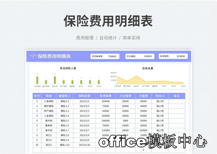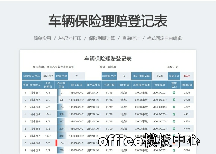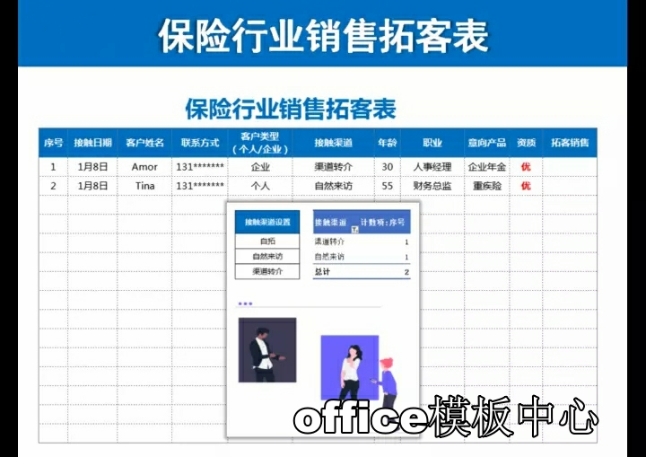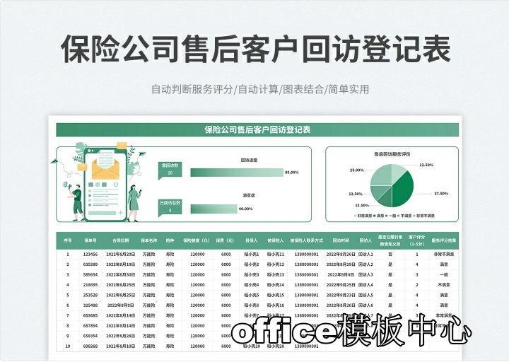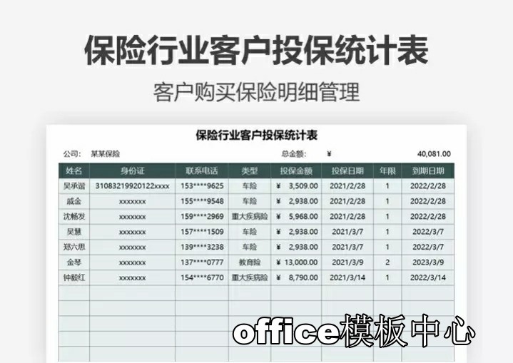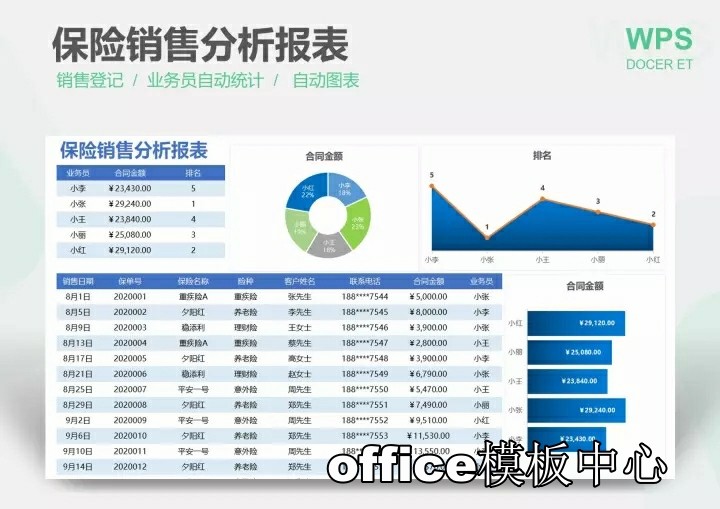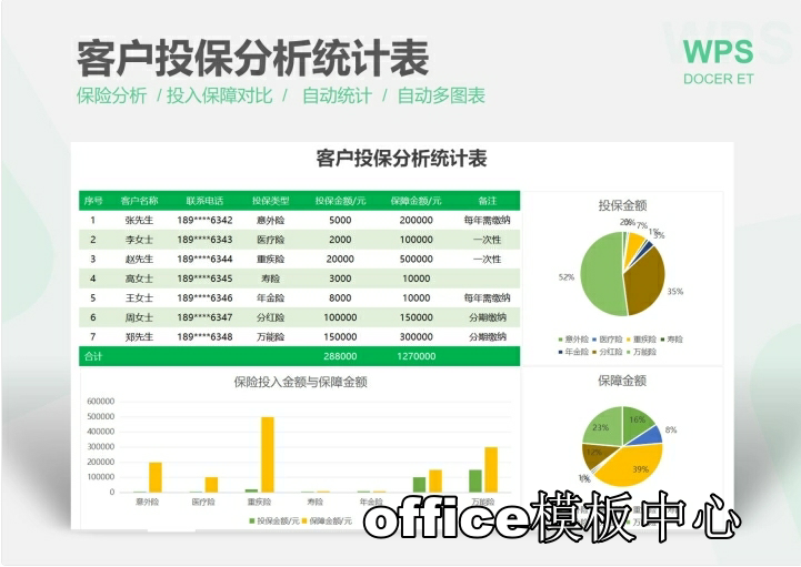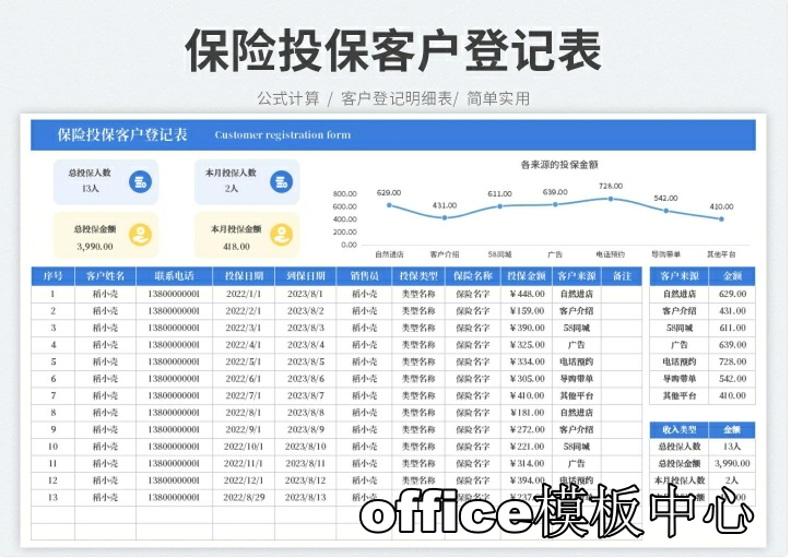 保险投保客户登记保险销售分析报表业务员每月成交理赔Excel表格