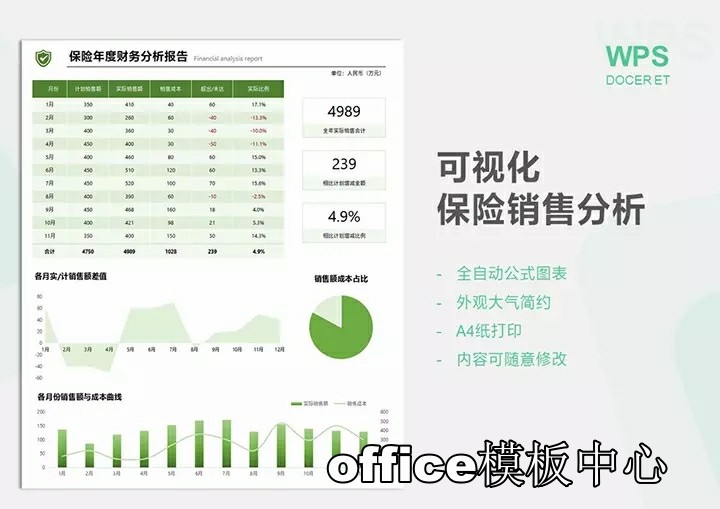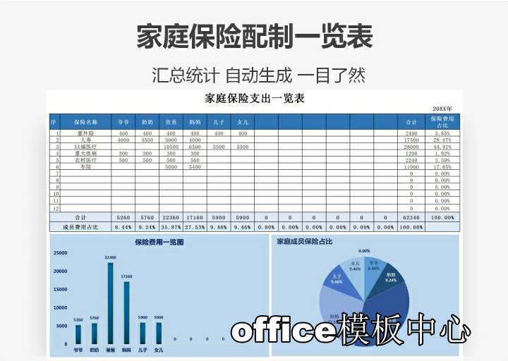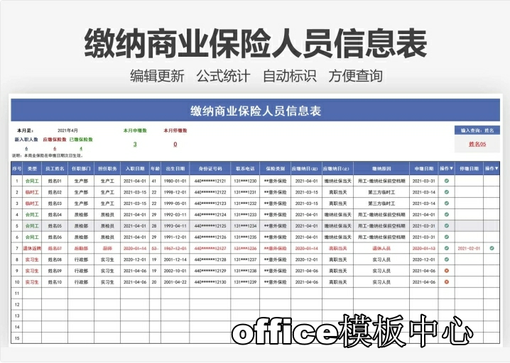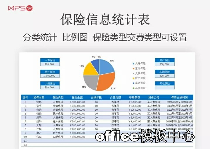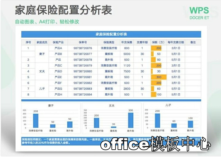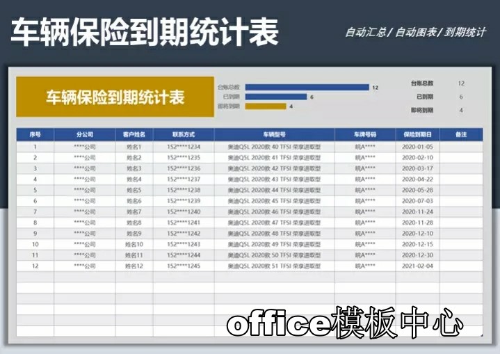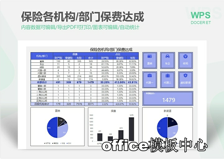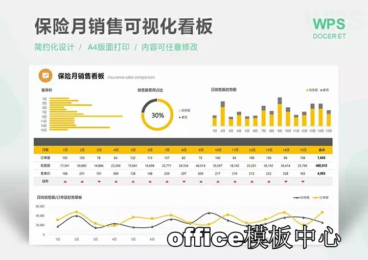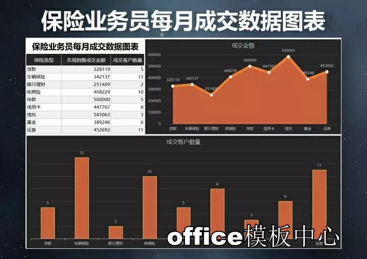 保险投保客户登记保险销售分析报表业务员每月成交理赔Excel表格