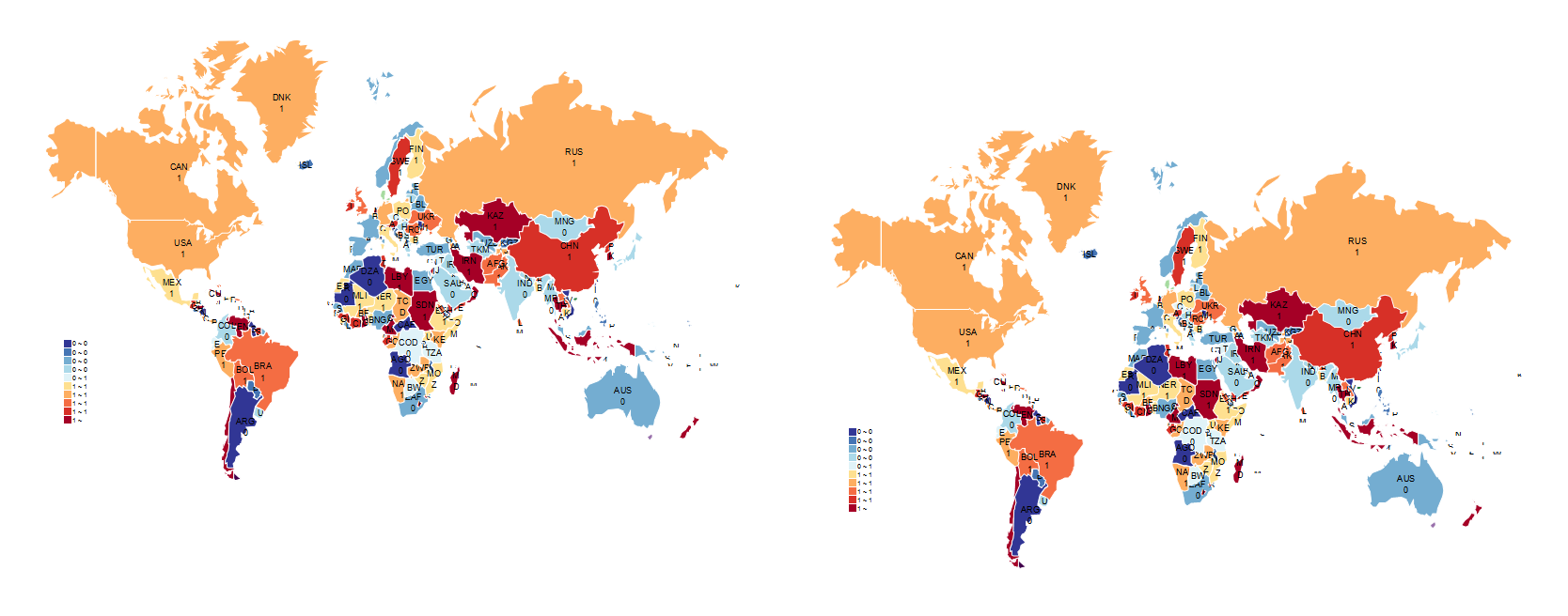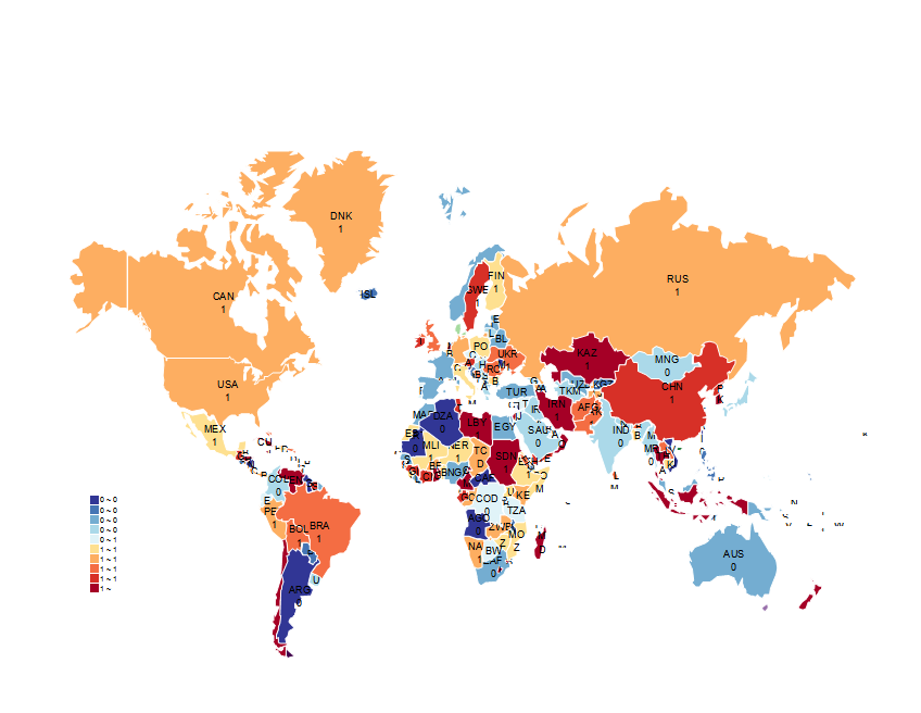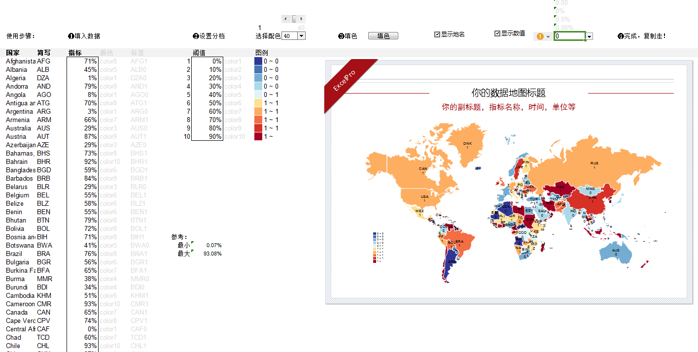 世界/全球热力图Excel表格电子模板一键填色可自定义颜色数值