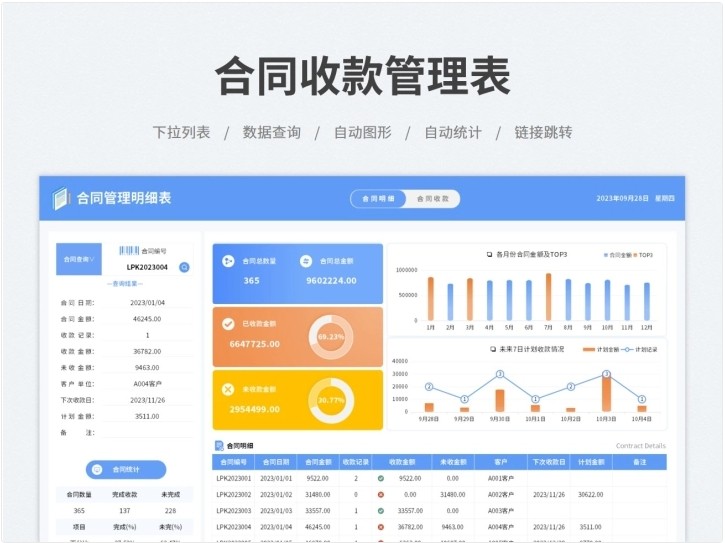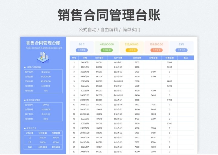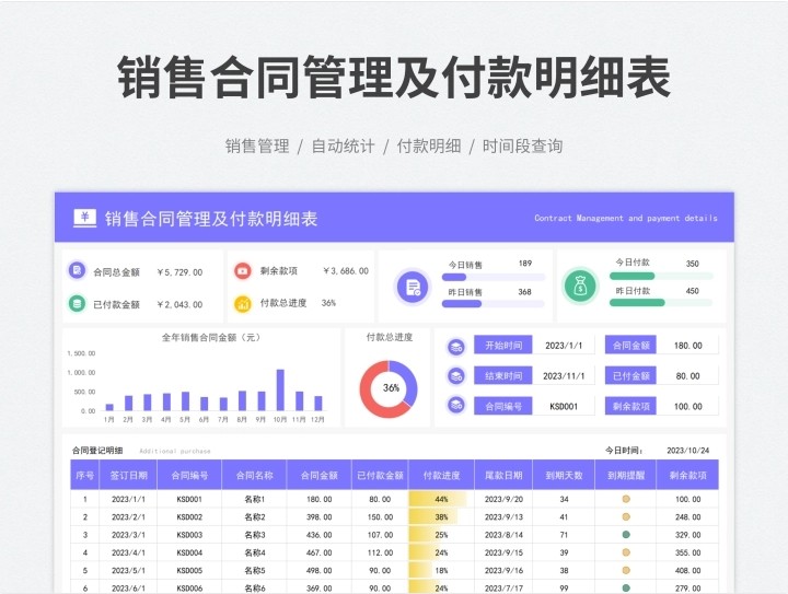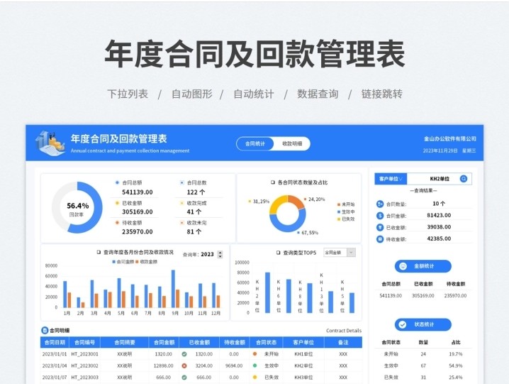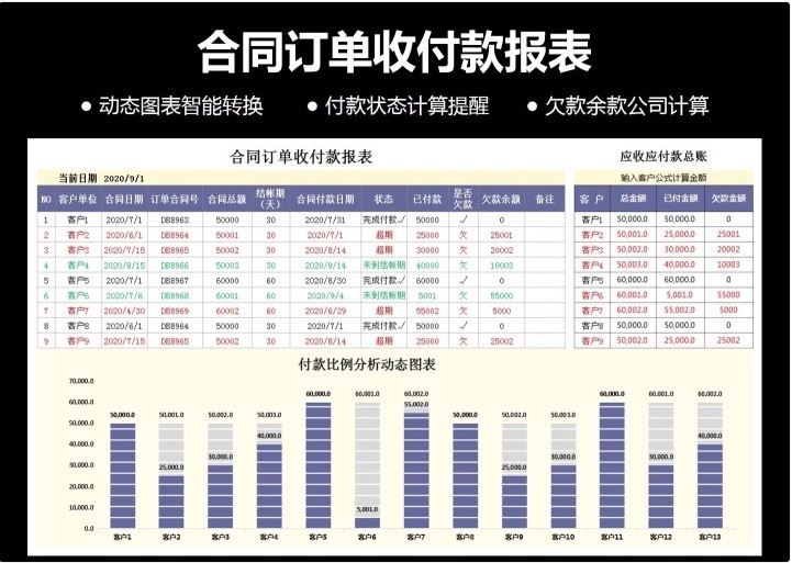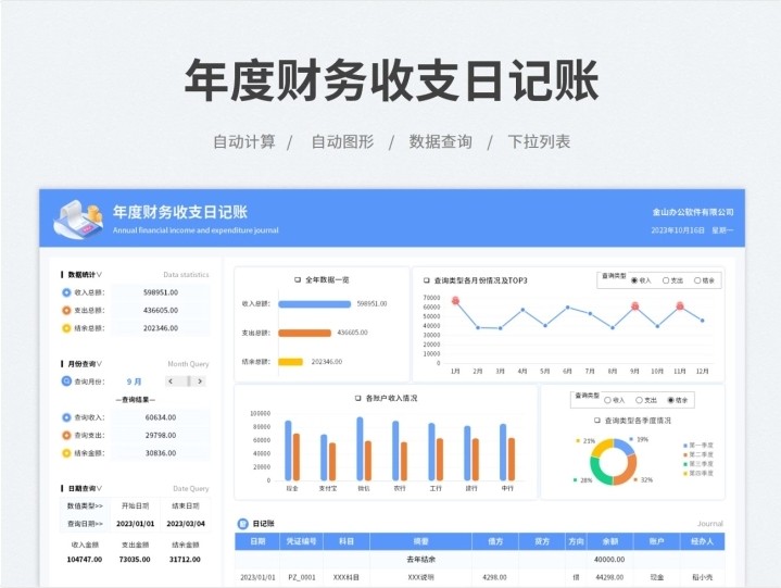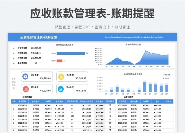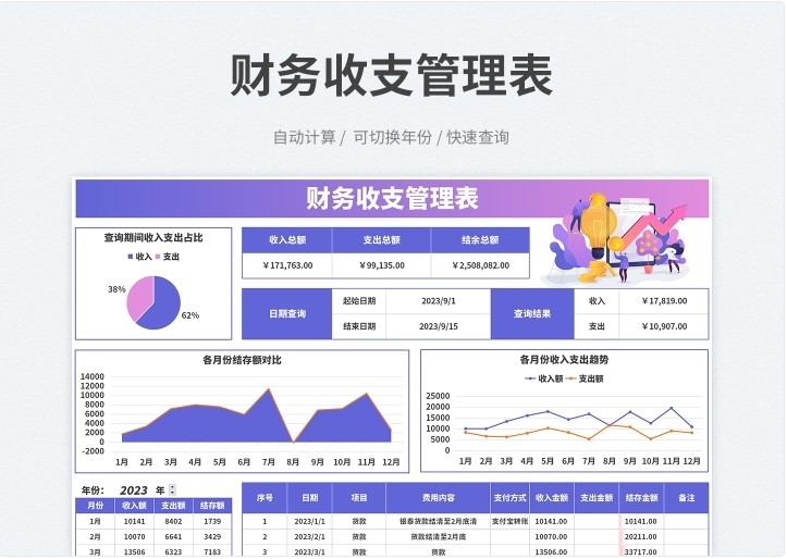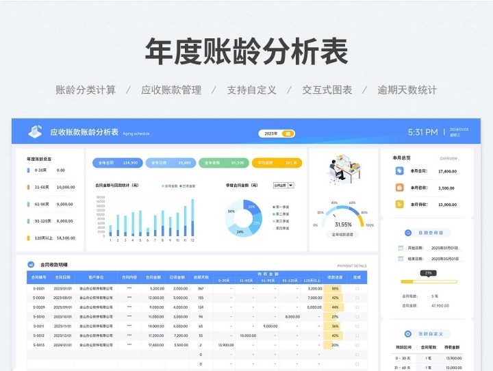 财务专用excel表格出纳收支记账财务分析应收应付账龄合同管理