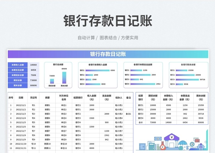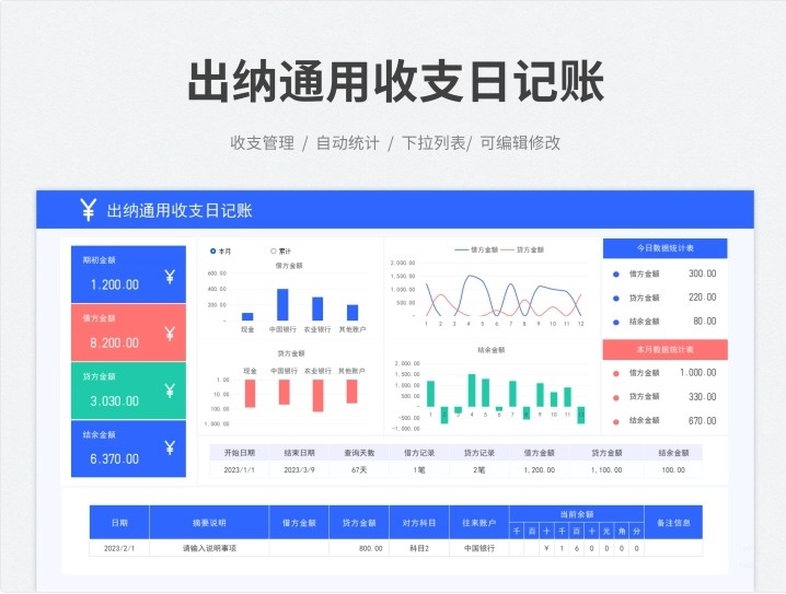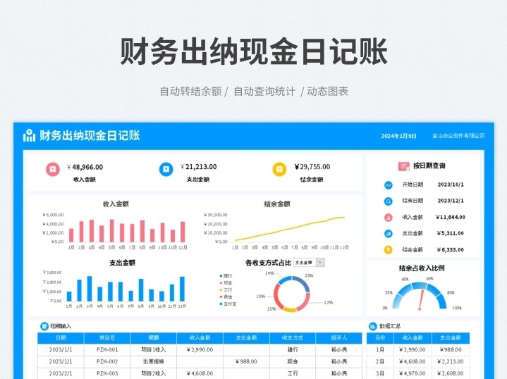 出纳日记账软件系统Excel表格中小企业财务做账收支管理明细报表