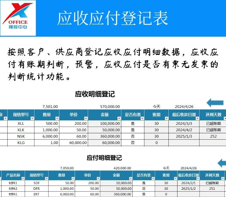 70套欠款管理Excel表格欠款提醒预警跟进明细统计进度分析登记