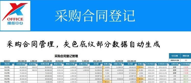 合同管理系统-旗舰版(合同续签付款提醒表格excel)