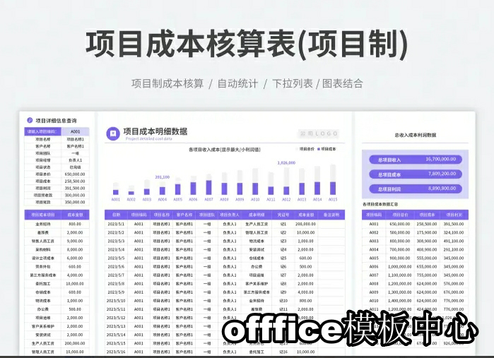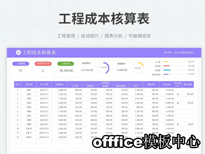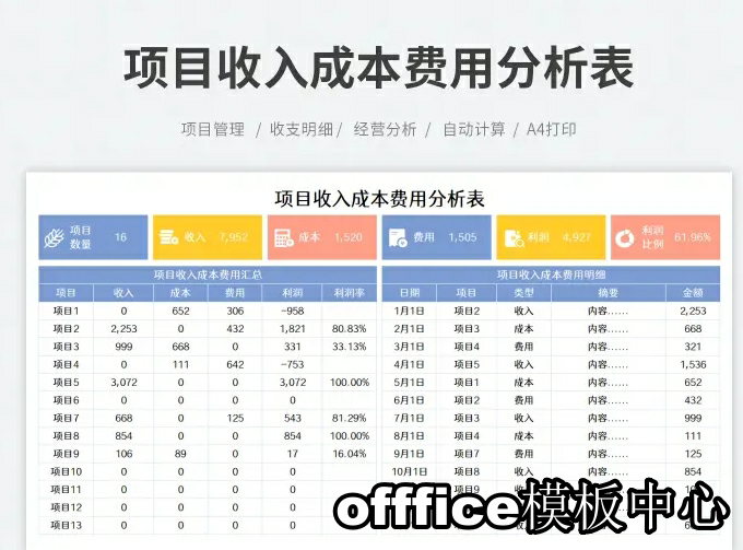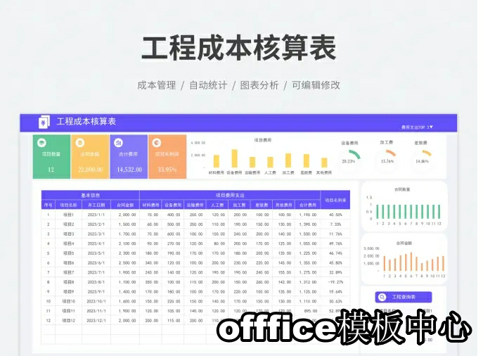 工程项目成本核算预算excel表格项目收支成本利润计算分析管理表