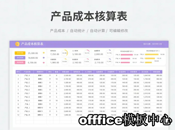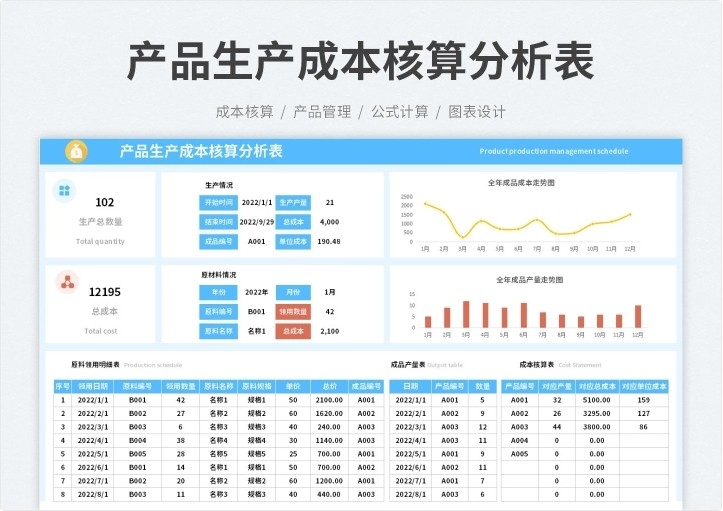 生产成本分析表excel表格产品成本核算管理系统构成利润估算