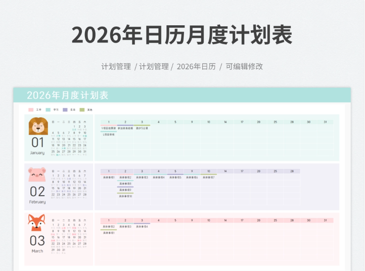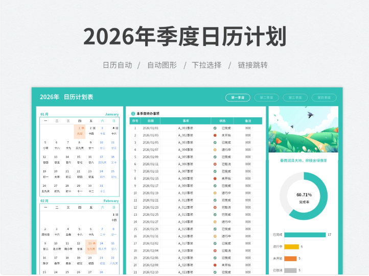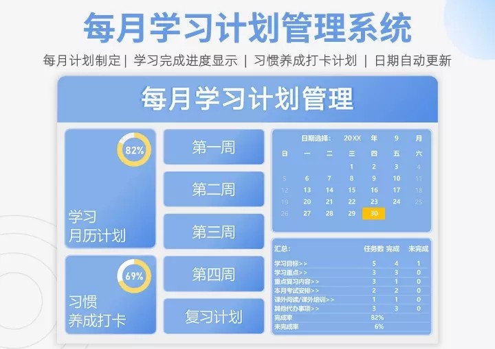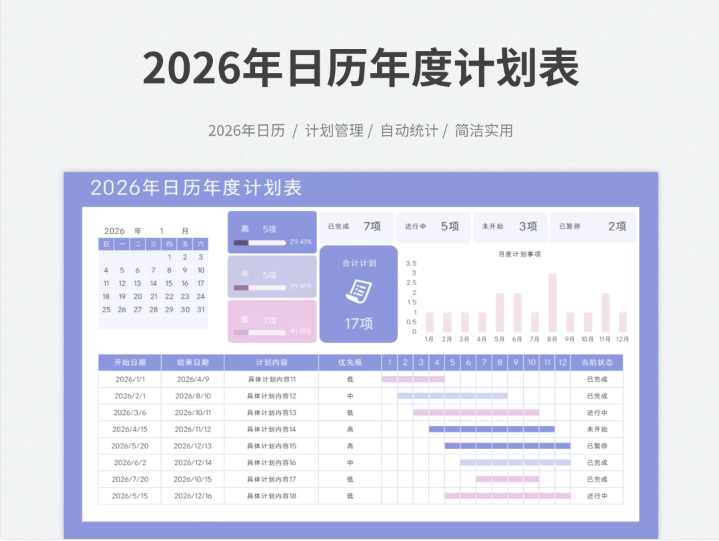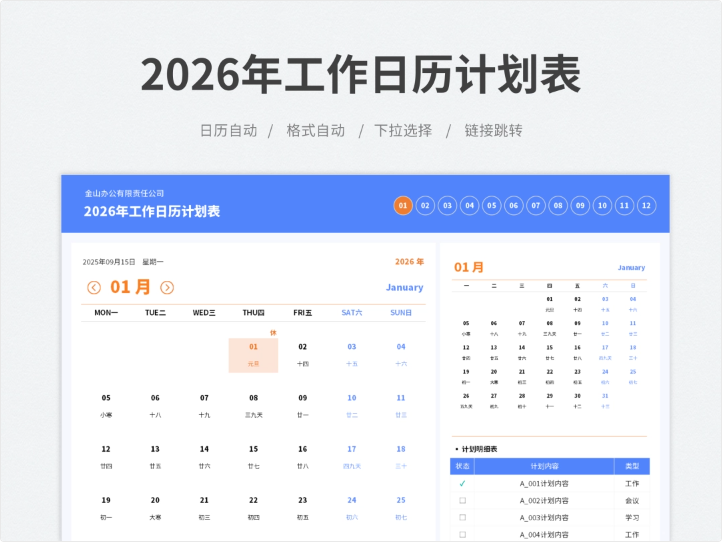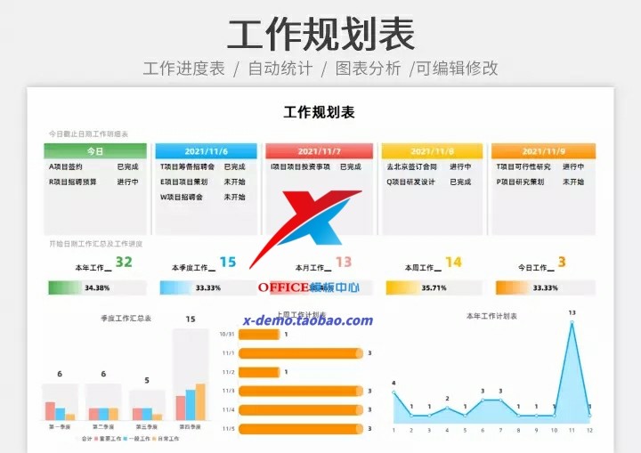 工作计划管理Excel表格年度工作总结PPT述职报告日历计划甘特图