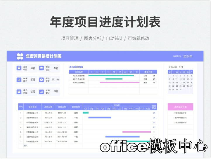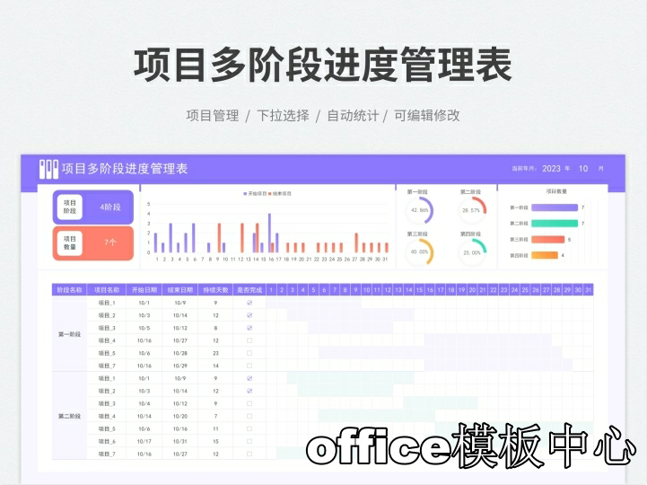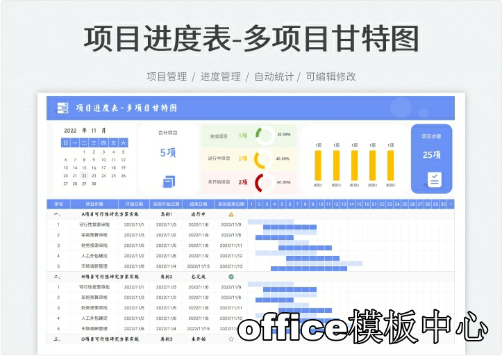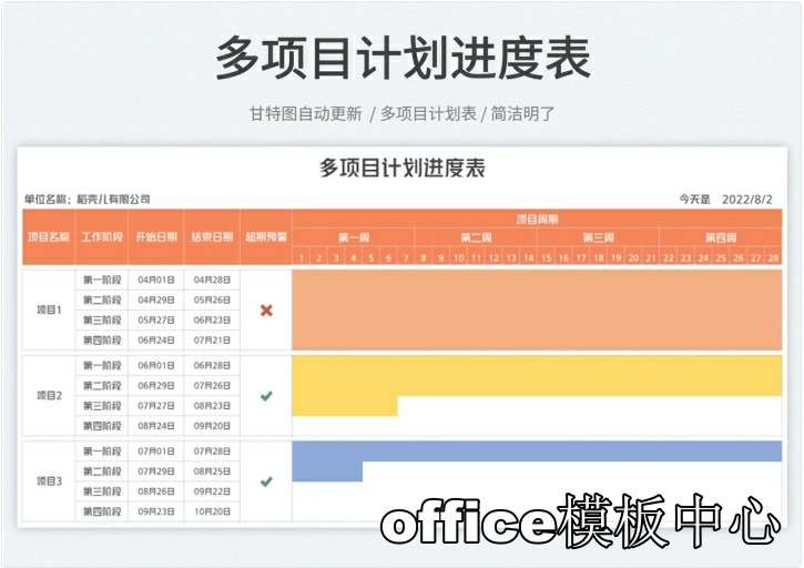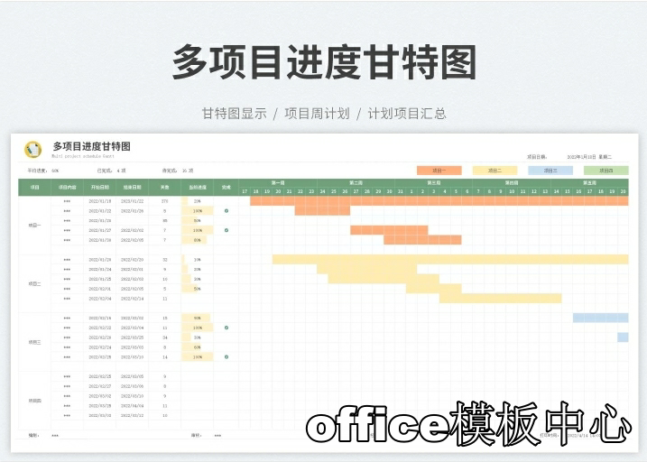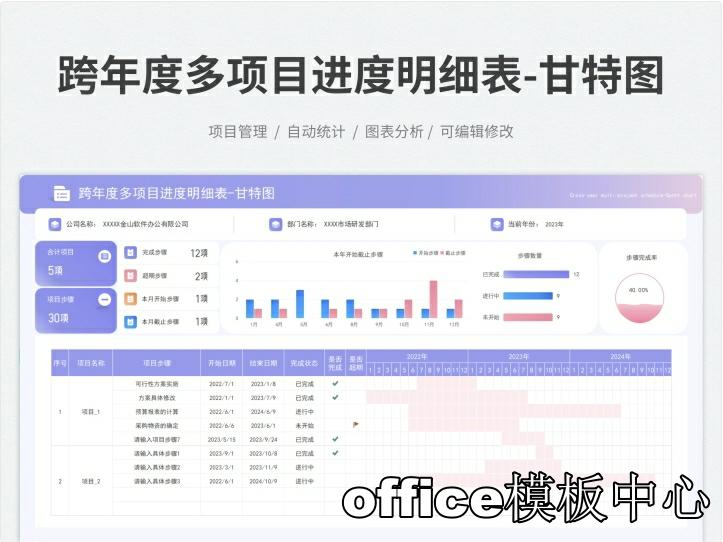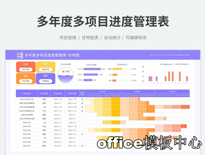 跨年度多项目多阶段项目计划进度管理表甘特图Excel表格