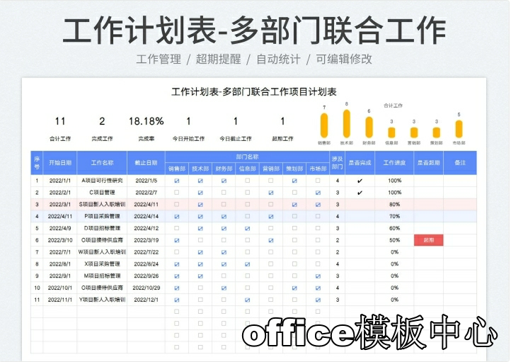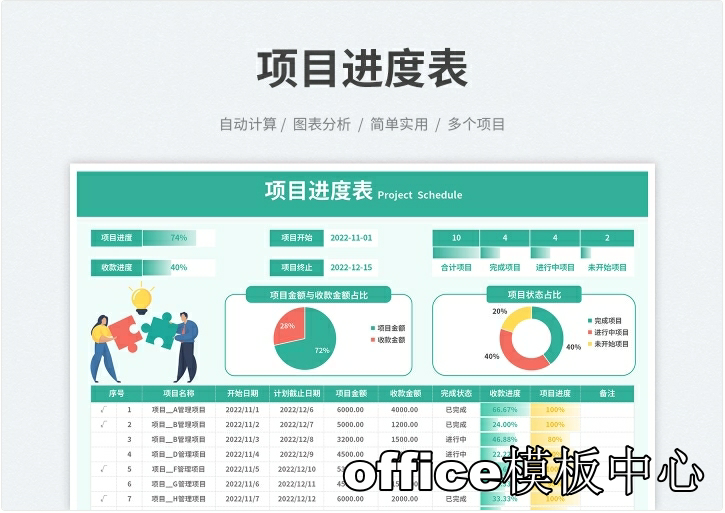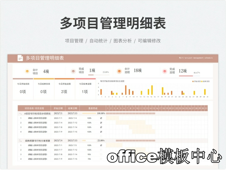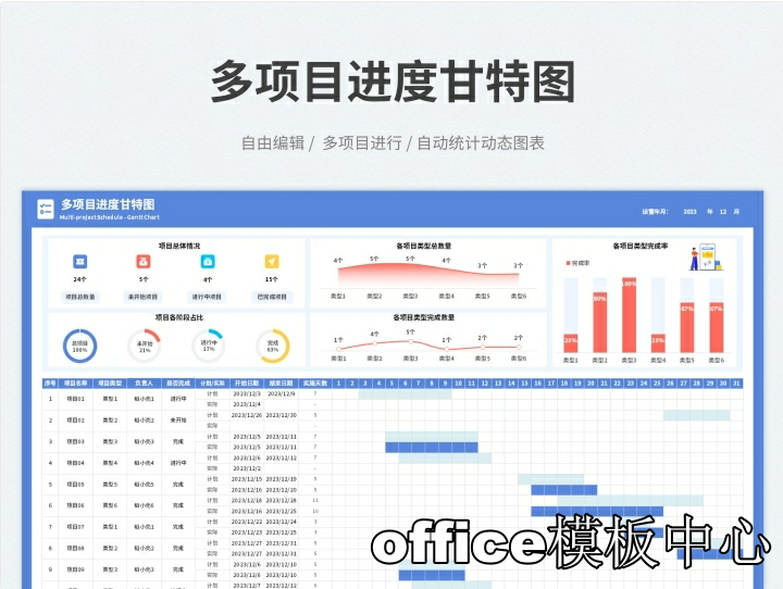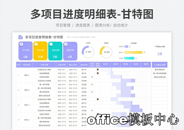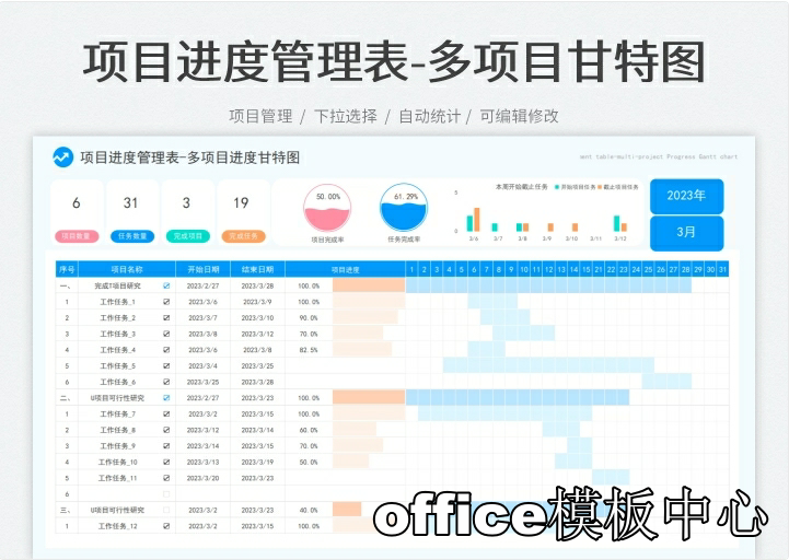 excel-项目管理进度甘特图模板(日+周+月进制版)