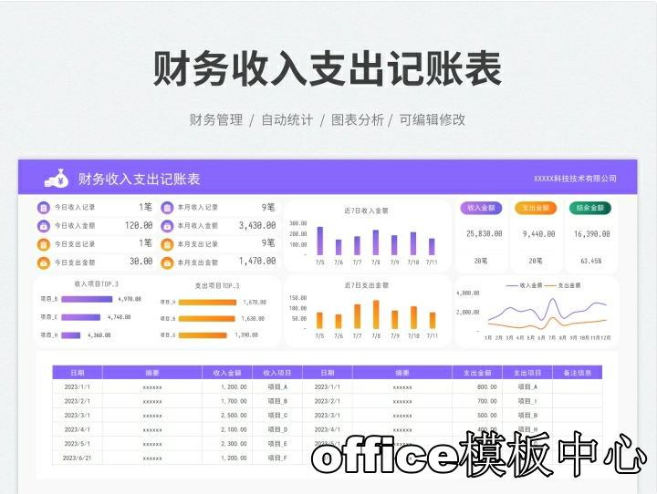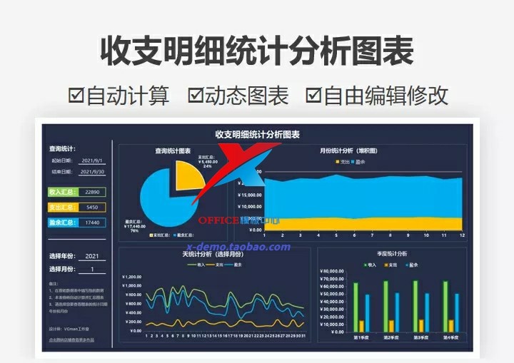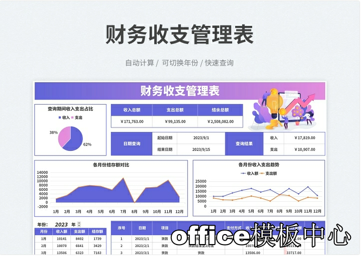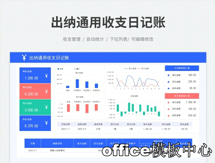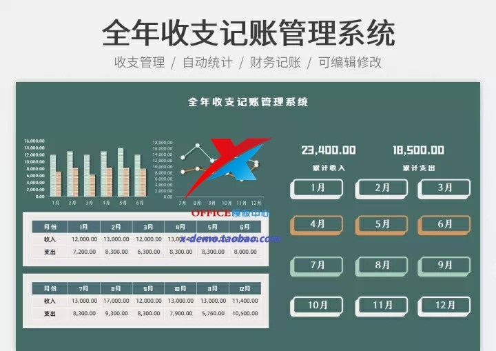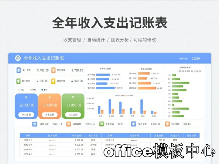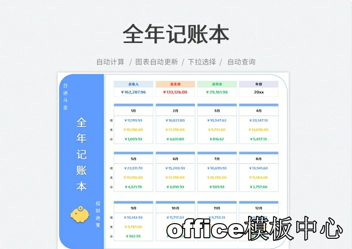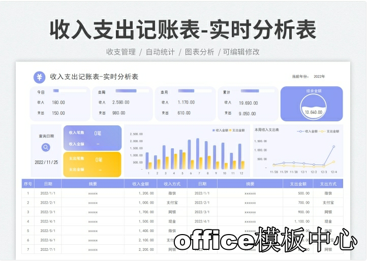 简易收支记账登记明细Excel表格财务全年收入支出系统实时分析