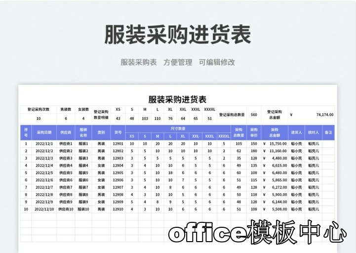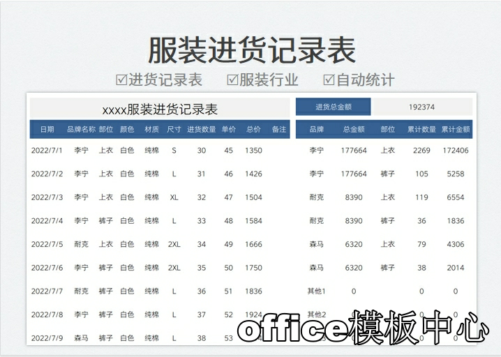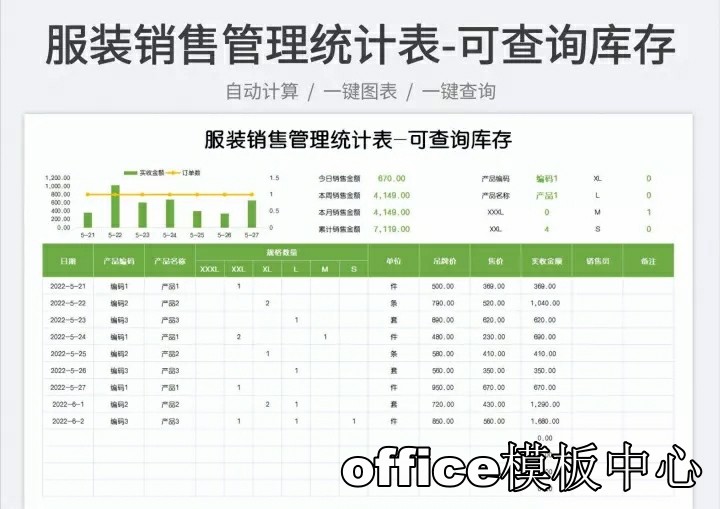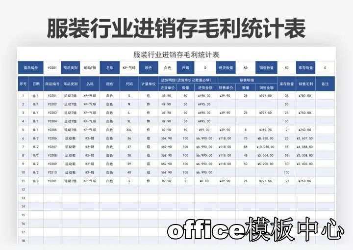 服装行业销量数据报表Excel工服采购库存销售成本核算表