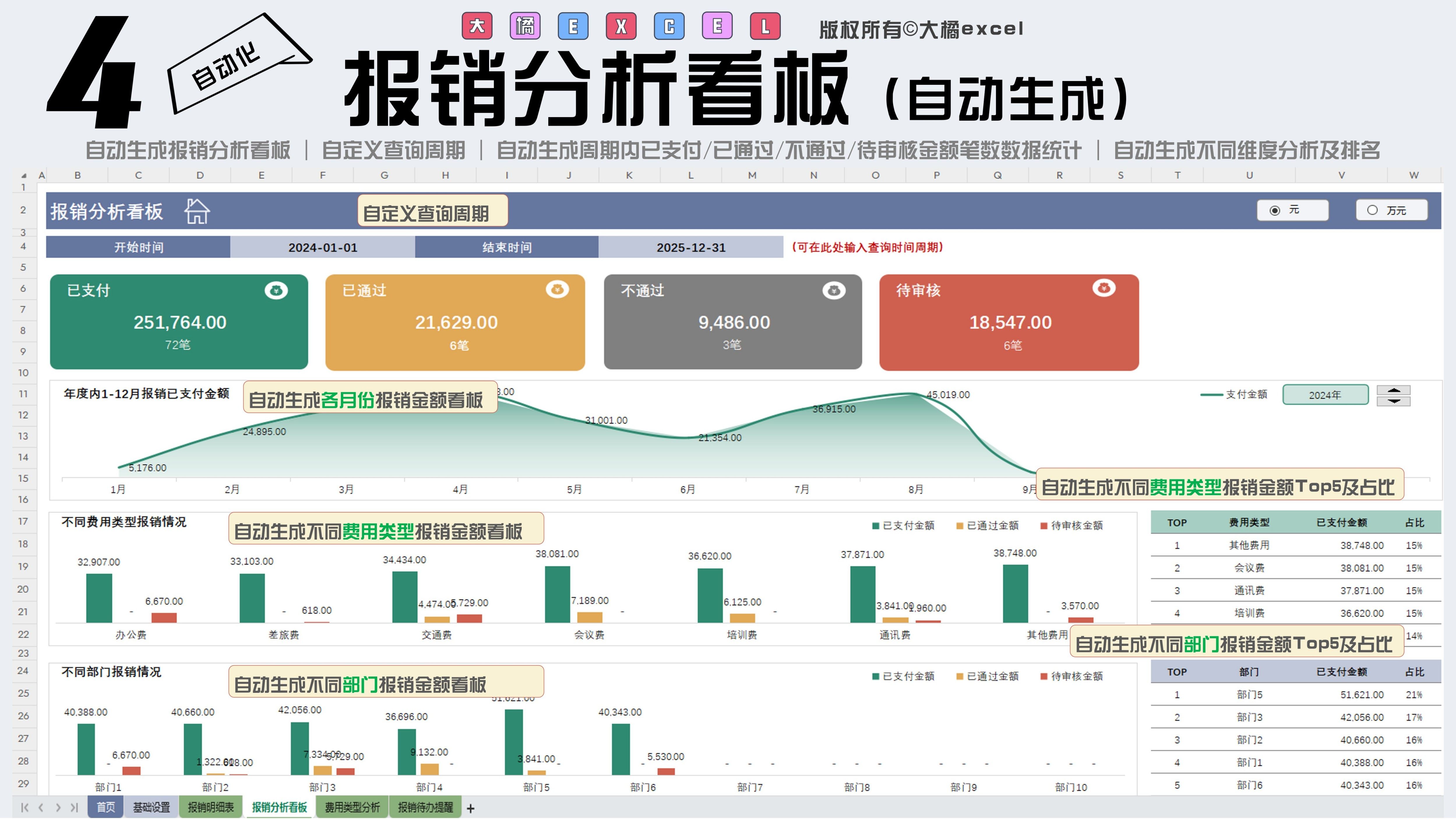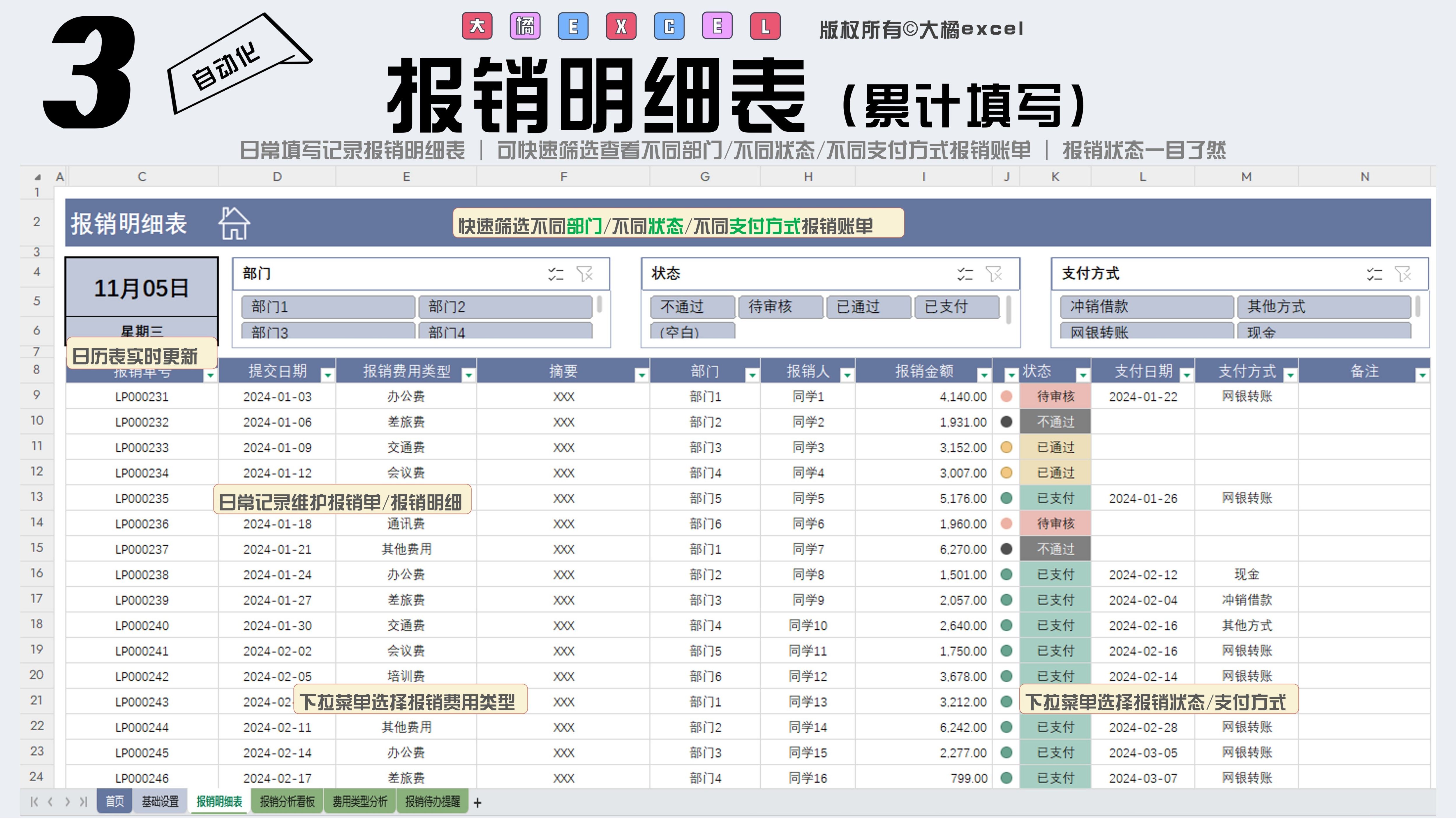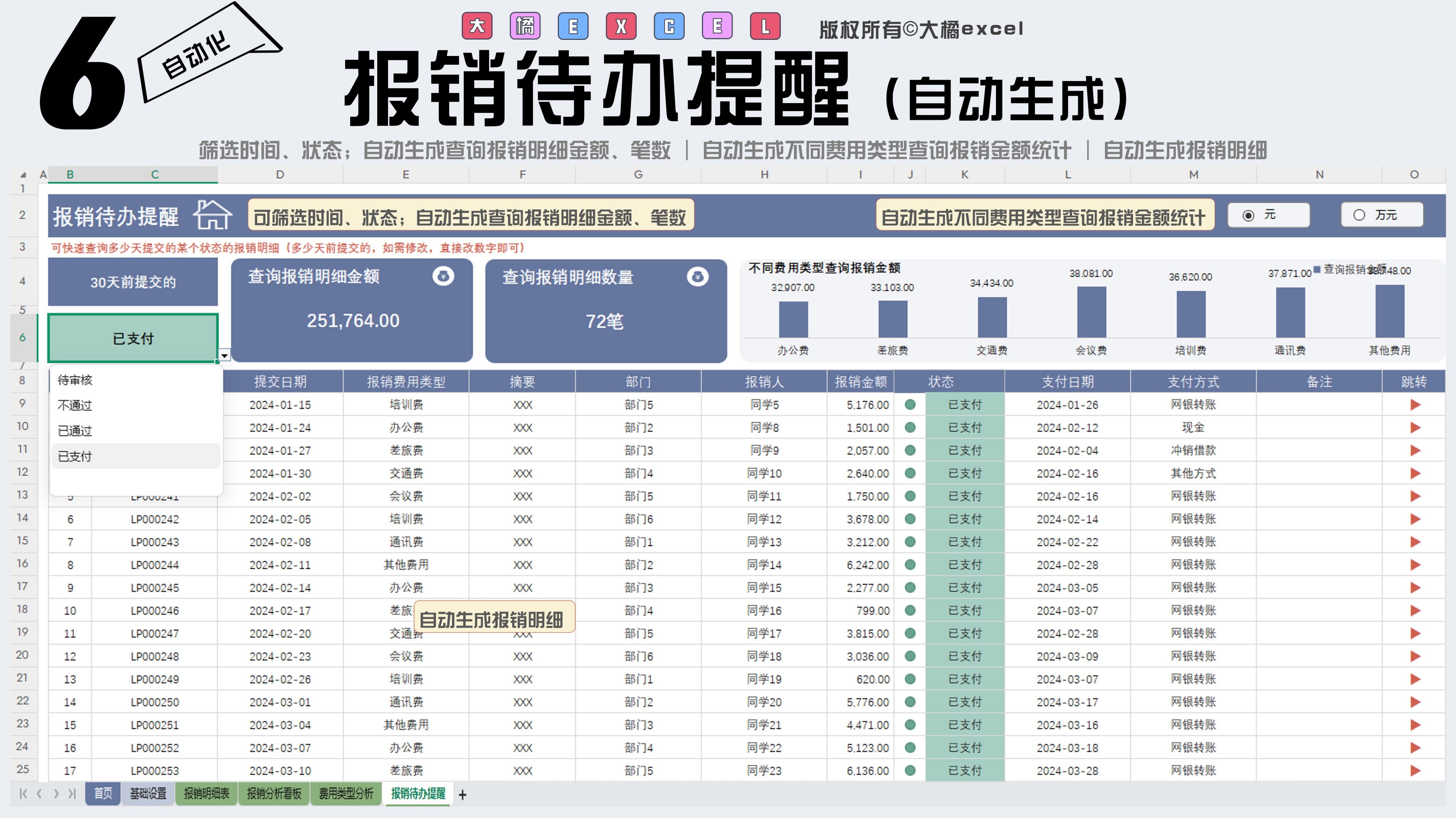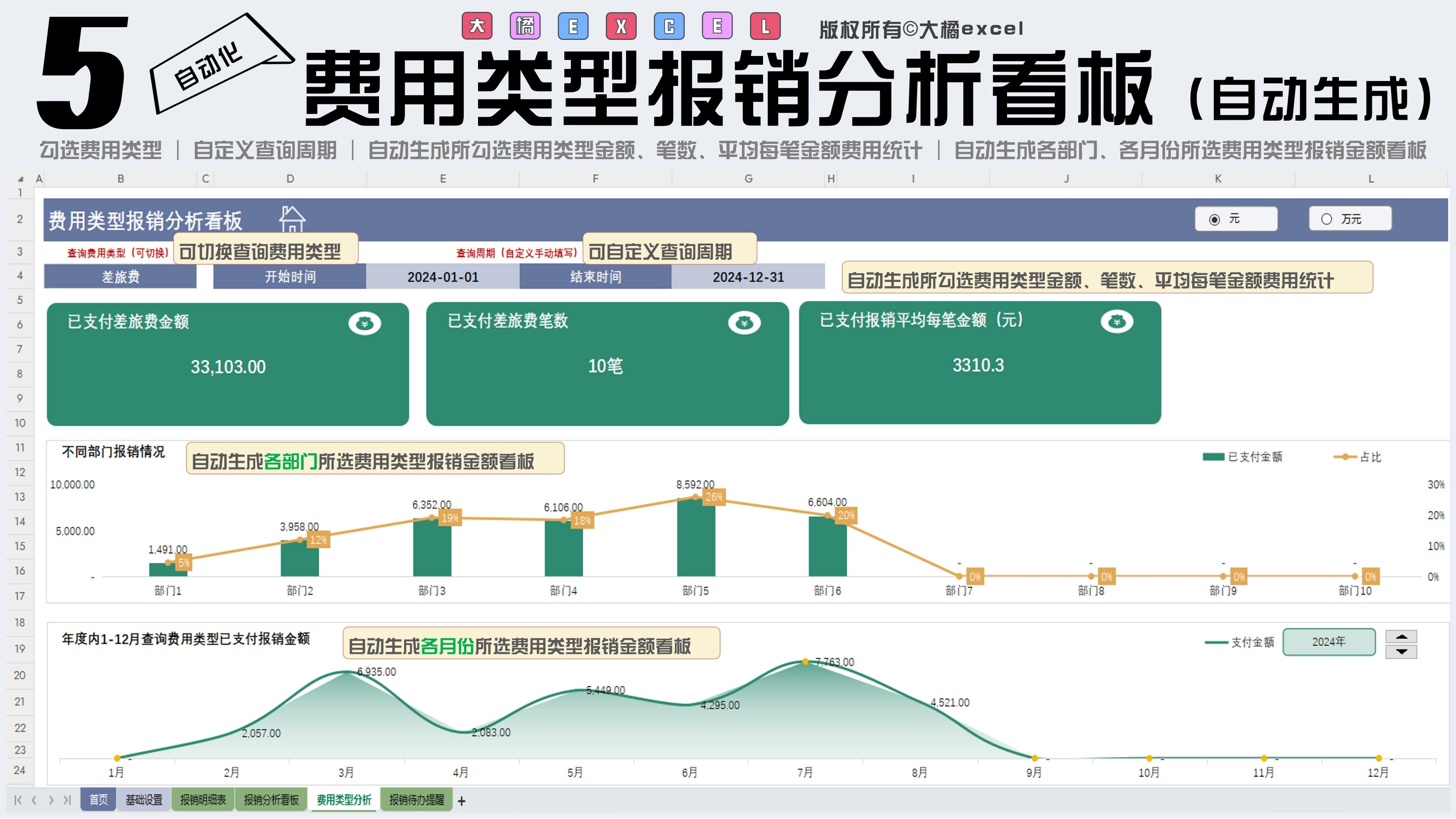 费用分析Excel表格费用支出明细表公司部门运营销售预算管理分析