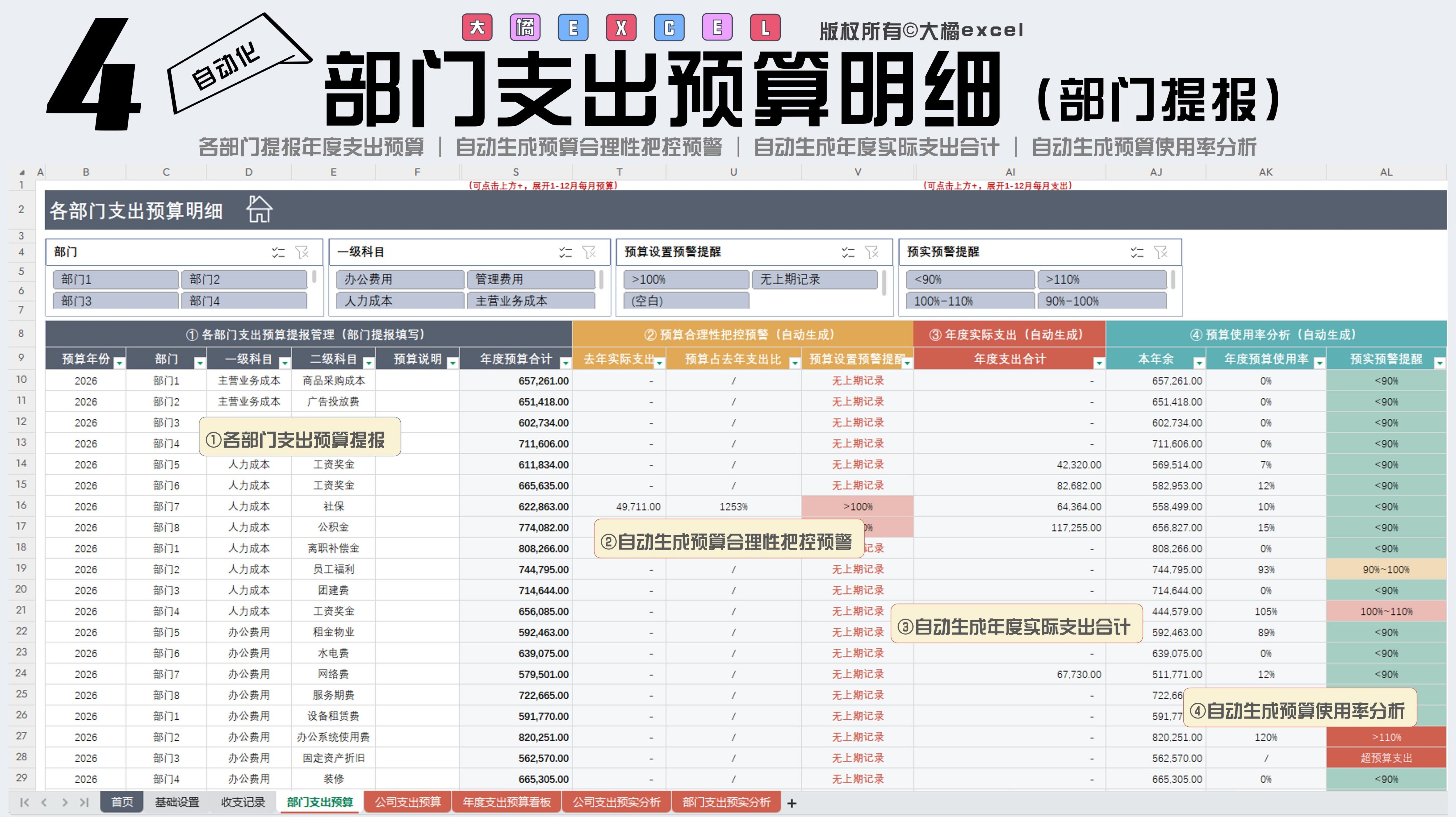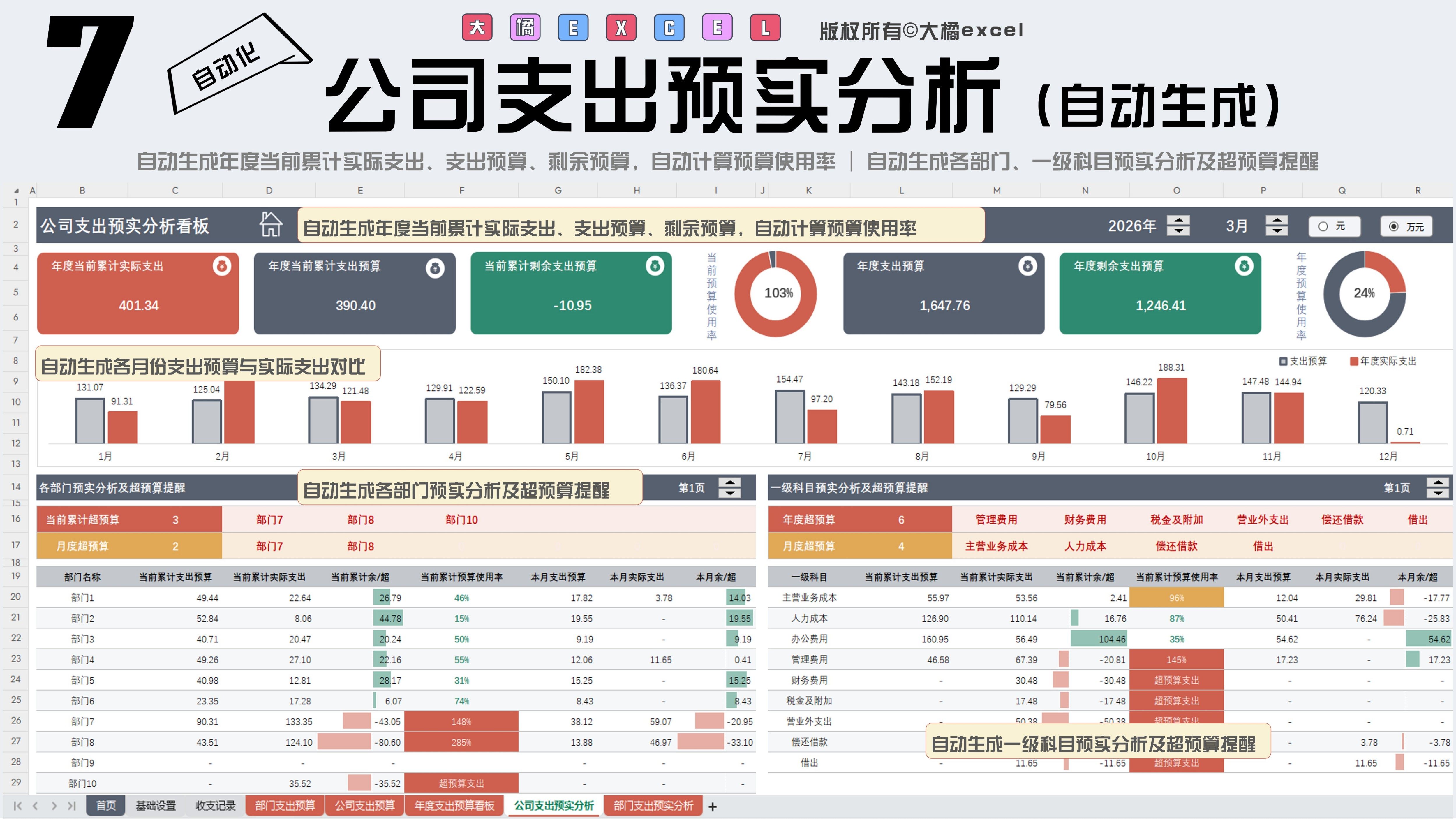 财务成本预算管理表格(预算管控/预实分析)