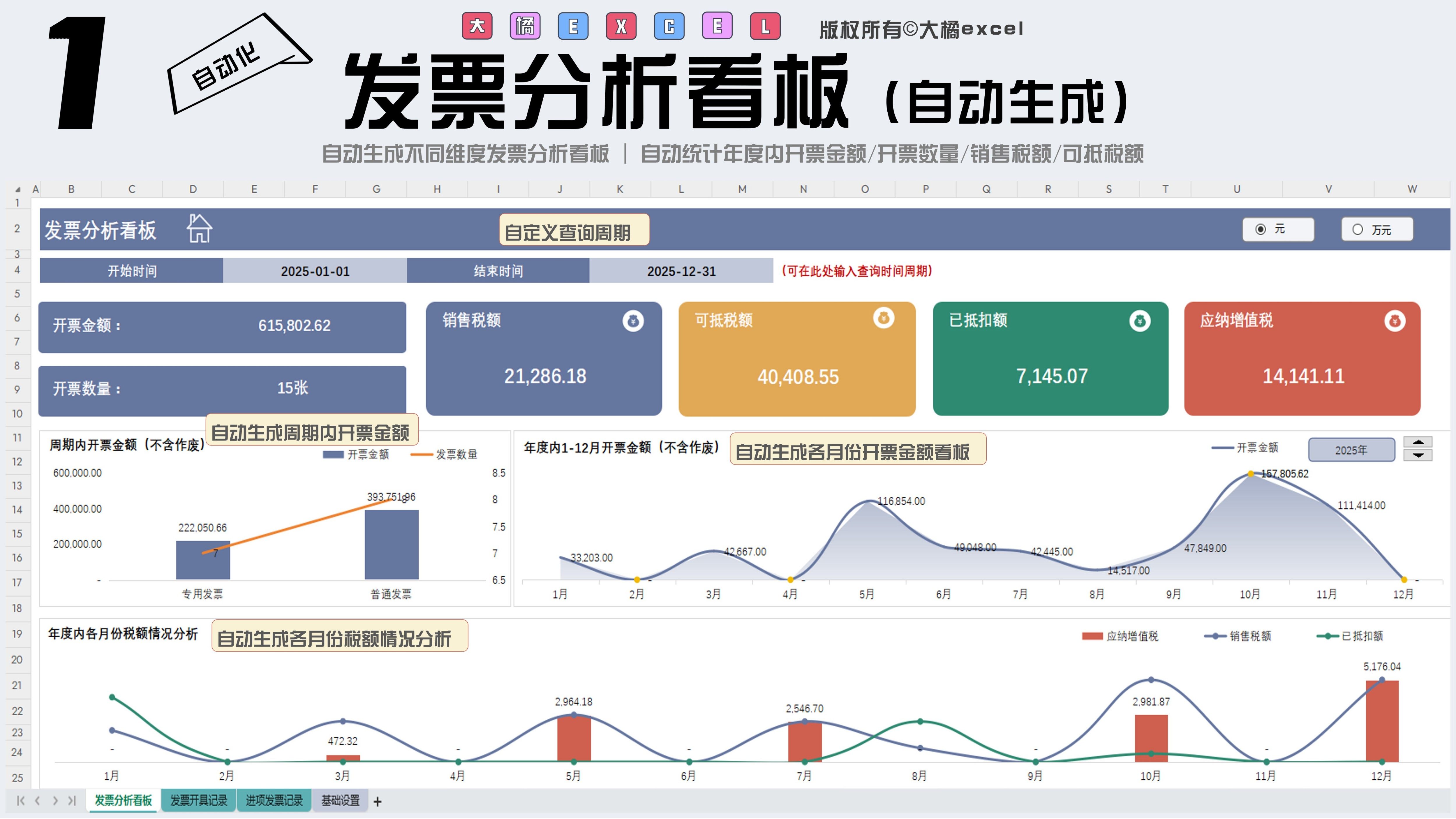 增值税专票抵扣管理财务税负税金分析报表缴纳自动计算Excel表